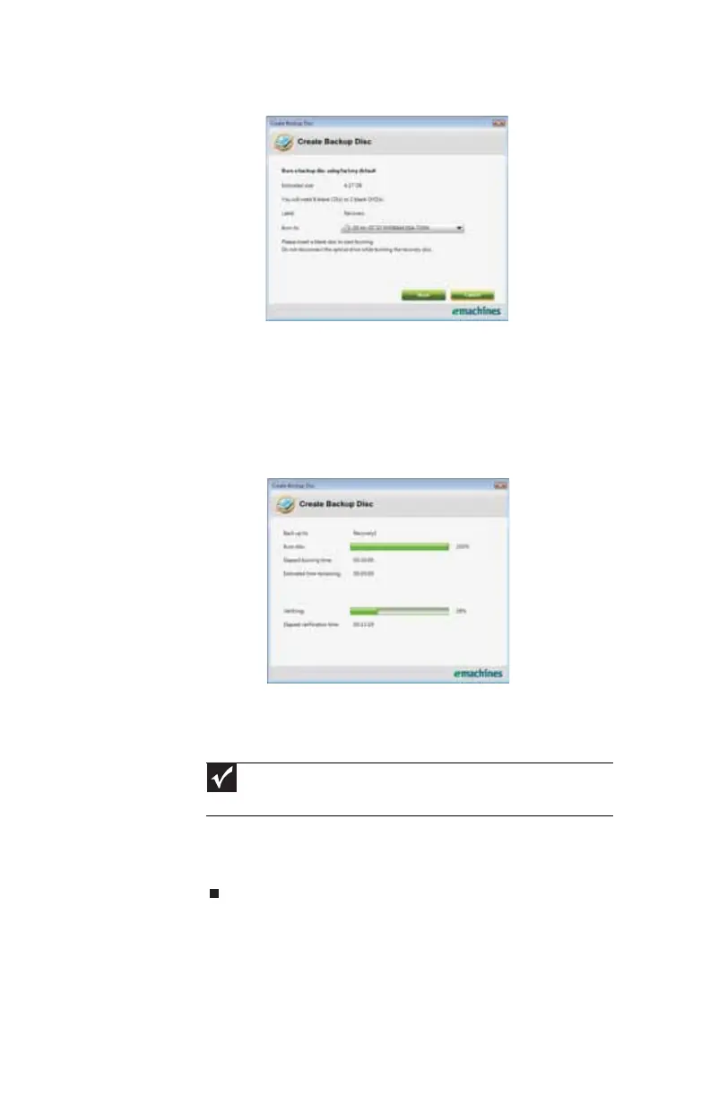 list, then click Next. The first disc begins recording, and