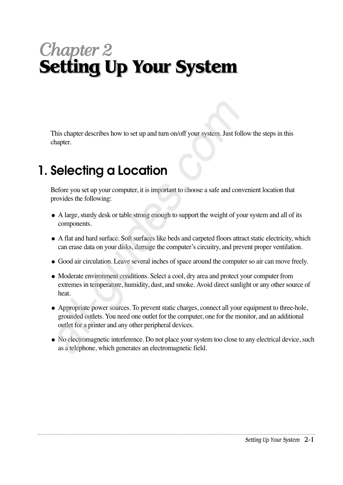 ● No electromagnetic interference. Do not place your system too close to any electrical device, such