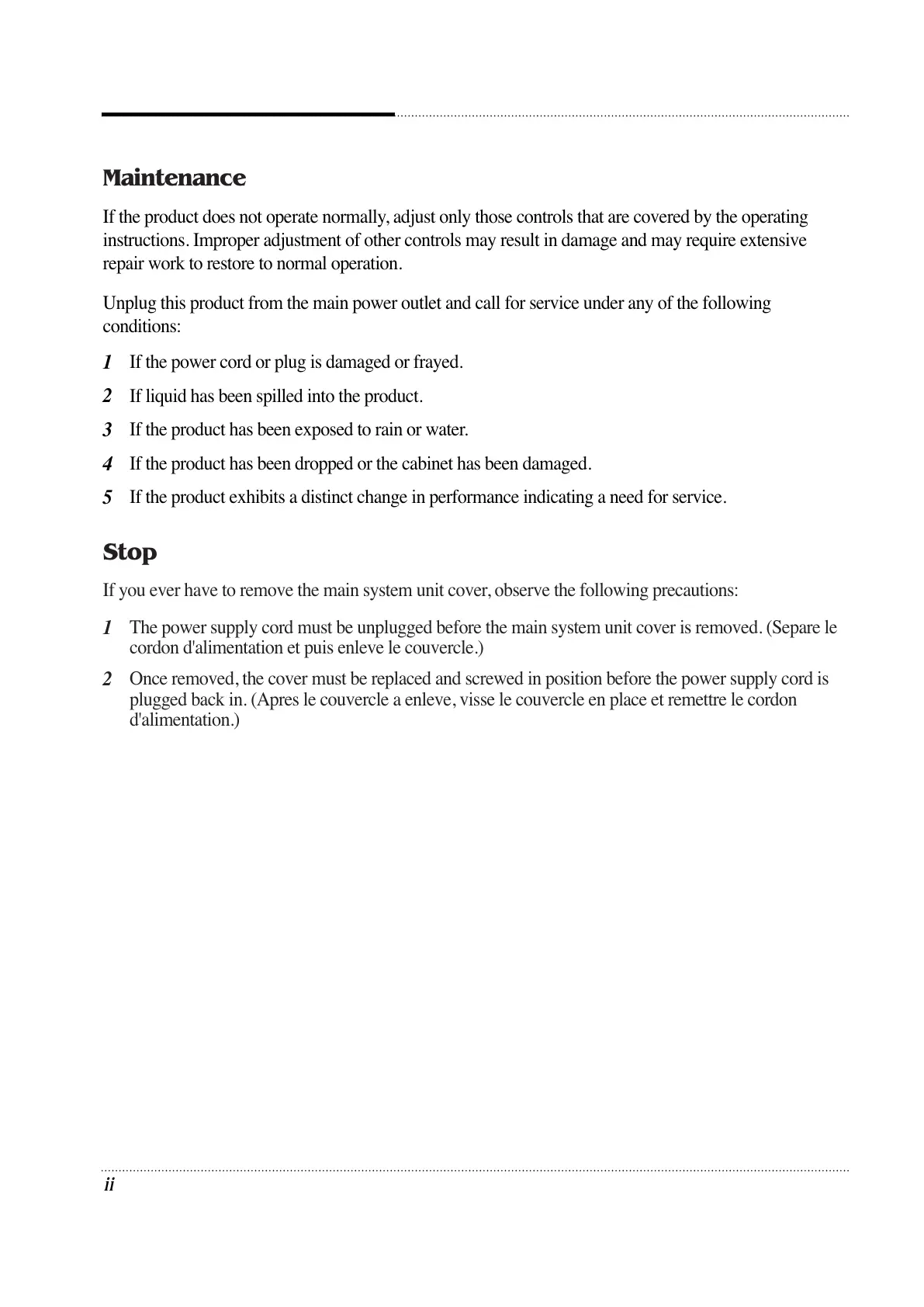 The power supply cord must be unplugged before the main system unit cover is removed. (Separe le