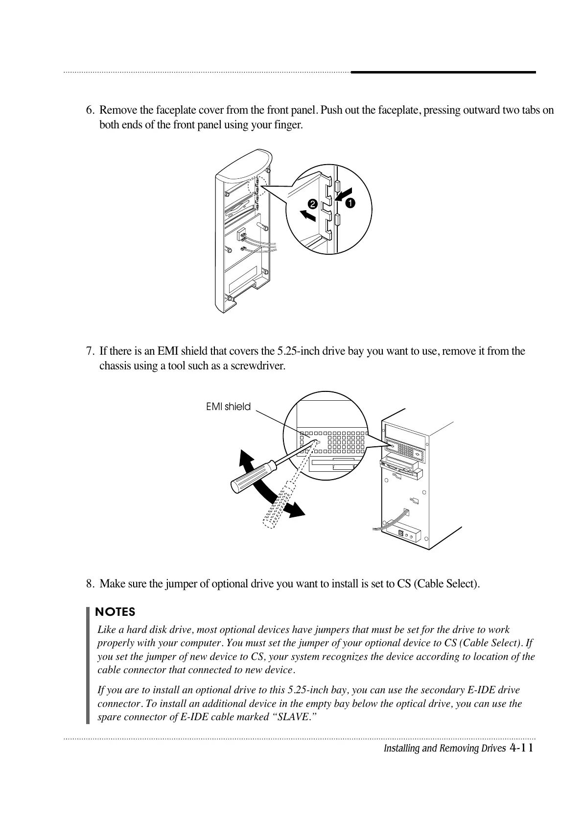 7. If there is an EMI shield that covers the 5.25-inch drive bay you want to use, remove it from the