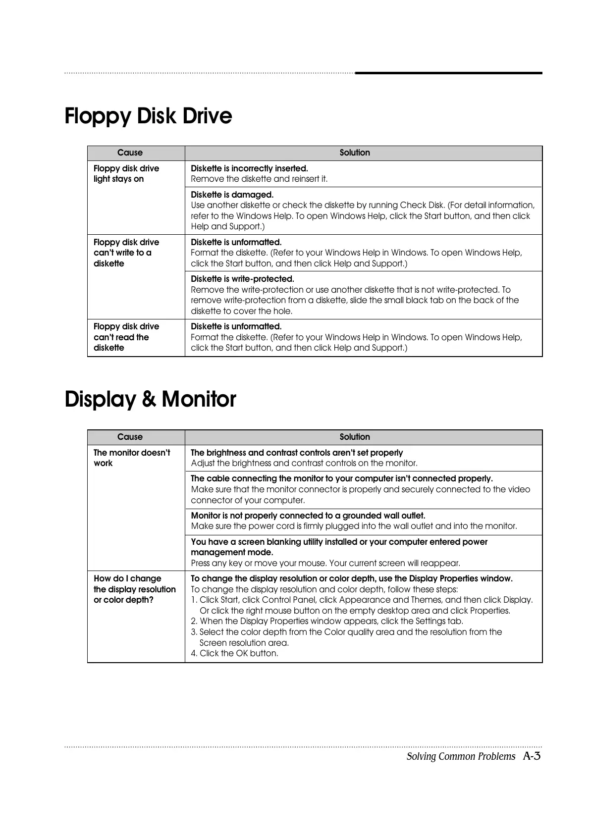 can’t write to a Format the diskette. (Refer to your Windows Help in Windows. To open Windows Help,