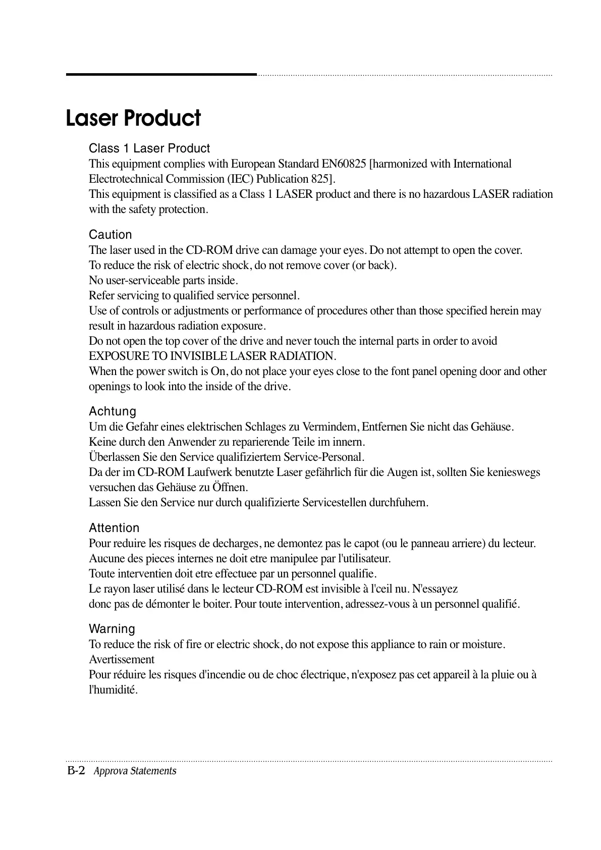 The laser used in the CD-ROM drive can damage your eyes. Do not attempt to open the cover.