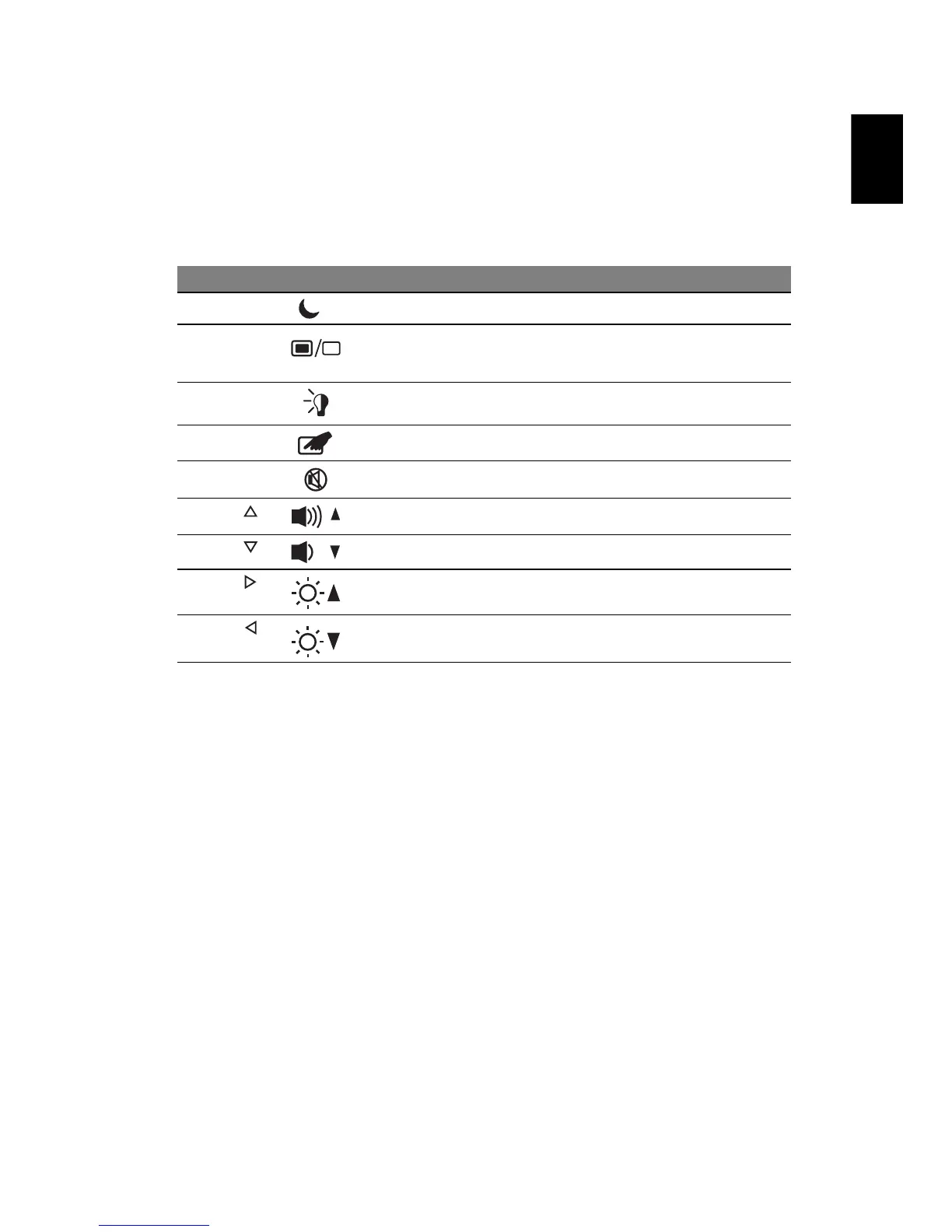To activate hotkeys, press and hold the <Fn> key before pressing the other key