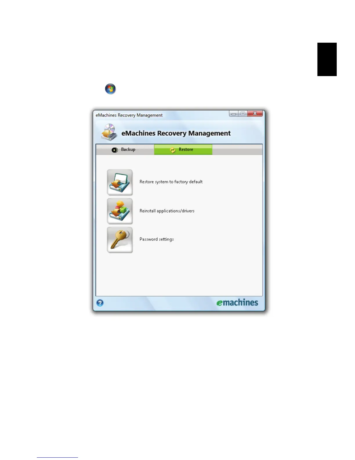 1 Click on Start, All Programs, eMachines.