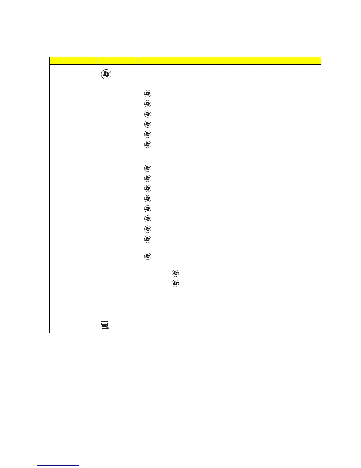 Windows key Pressed alone, this key has the same effect as clicking on the Windows