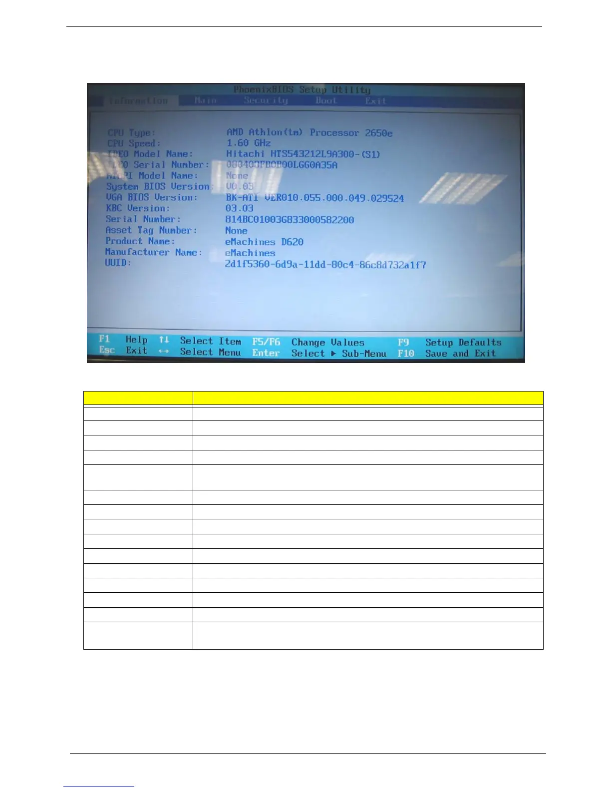 IDE0 Serial Number Serial number of HDD installed on the primary IDE channel.