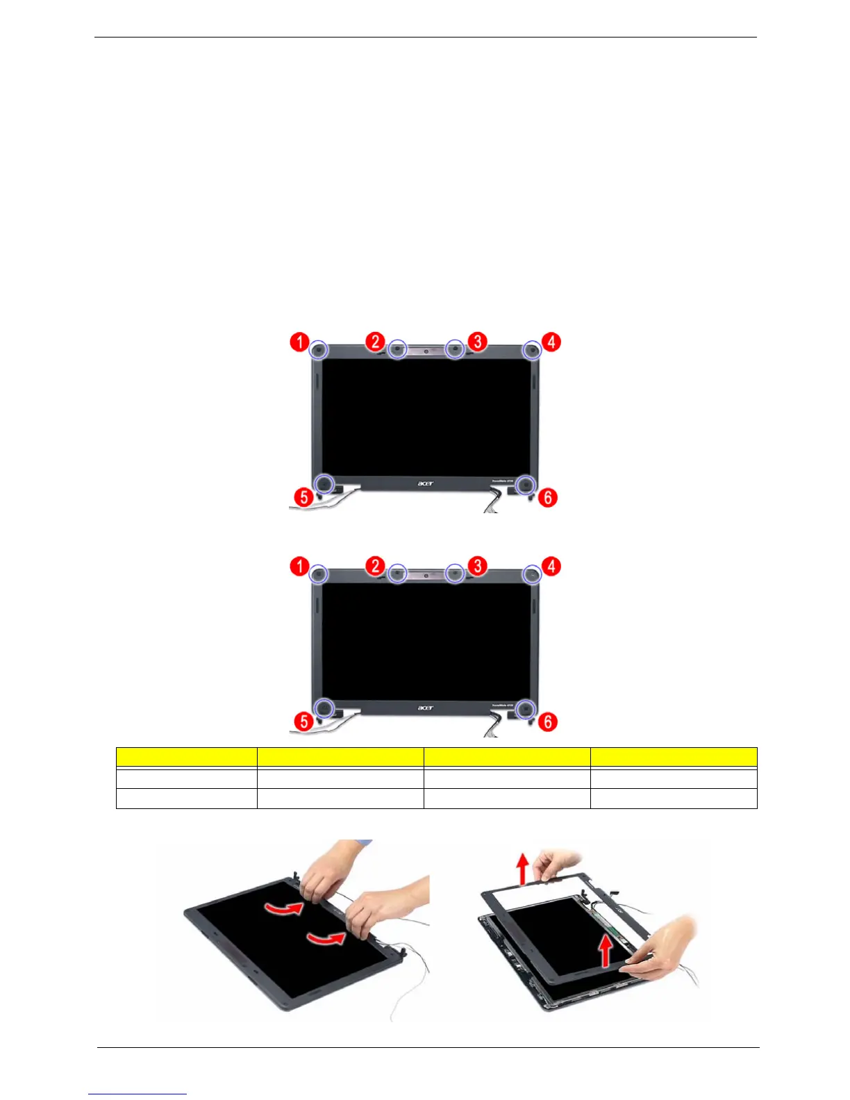 11. Remove the six screws (Ex2, Hx4) on the LCD module in the order as shown.