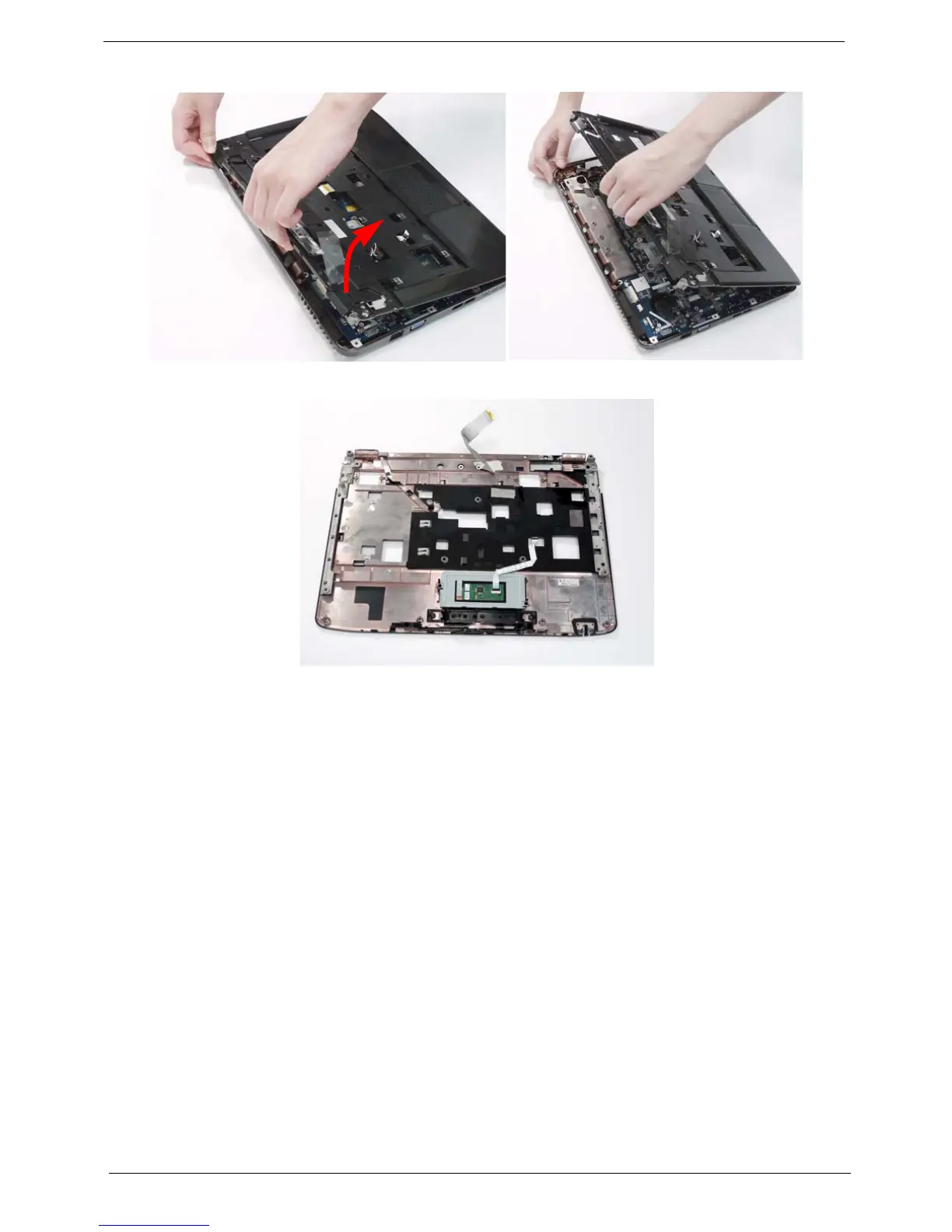7. Remove the upper cover by lifting upward from the chassis, rear edge first.