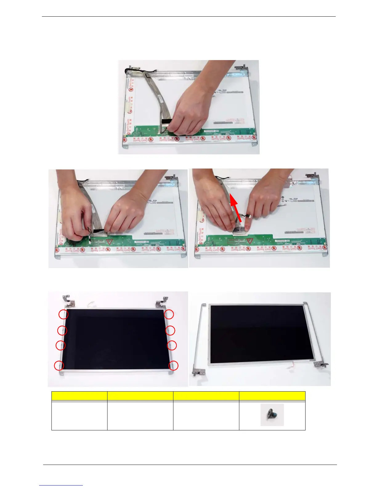 3. Lift the adhesive protector and disconnect the cable from the LCD Panel.