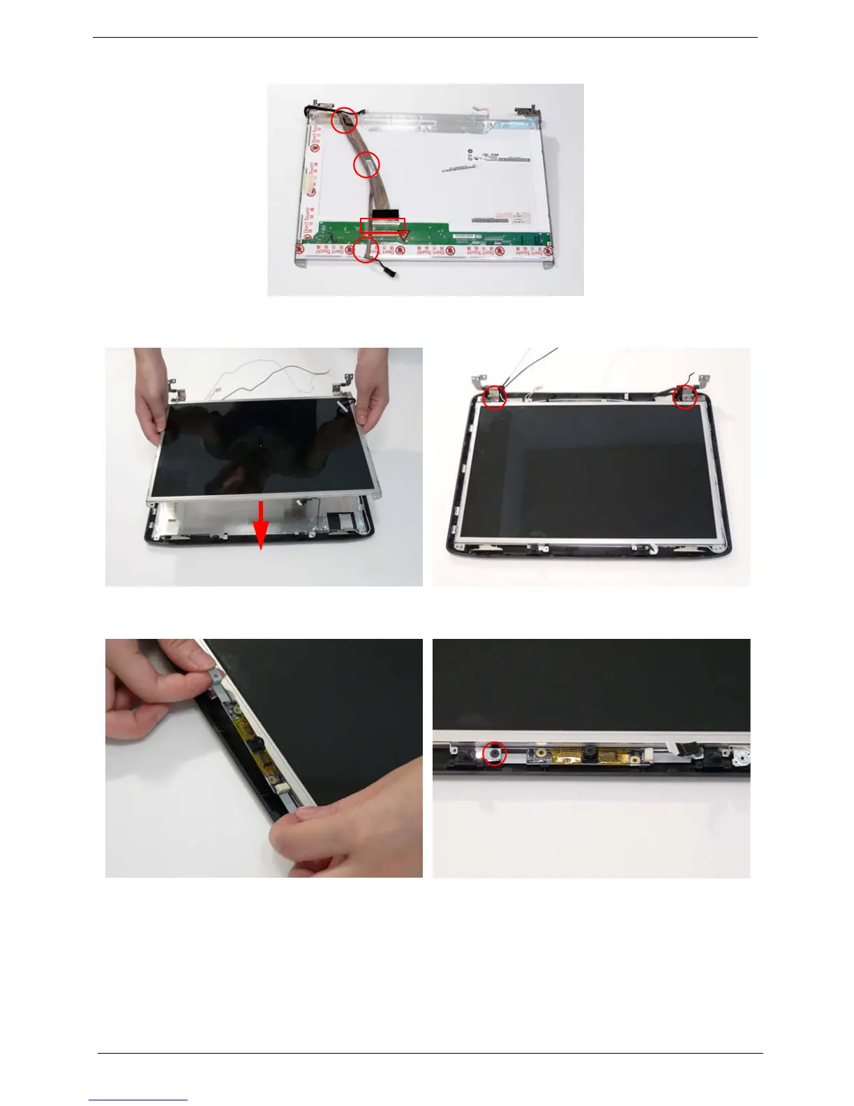 8. Place the LCD Panel in the back cover. 9. Secure the LCD module with the two securing