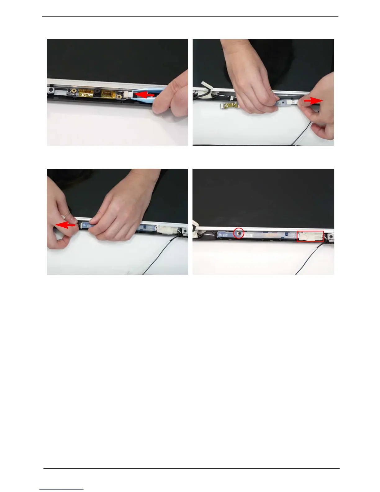 12. Connect the Camera Module cable. 13. Connect the right side inverter cable.