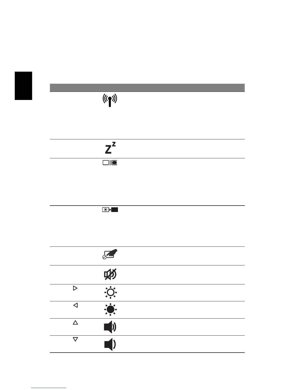 Zum Aktivieren von Hotkeys müssen Sie zuerst die <Fn>-Taste drücken und halten