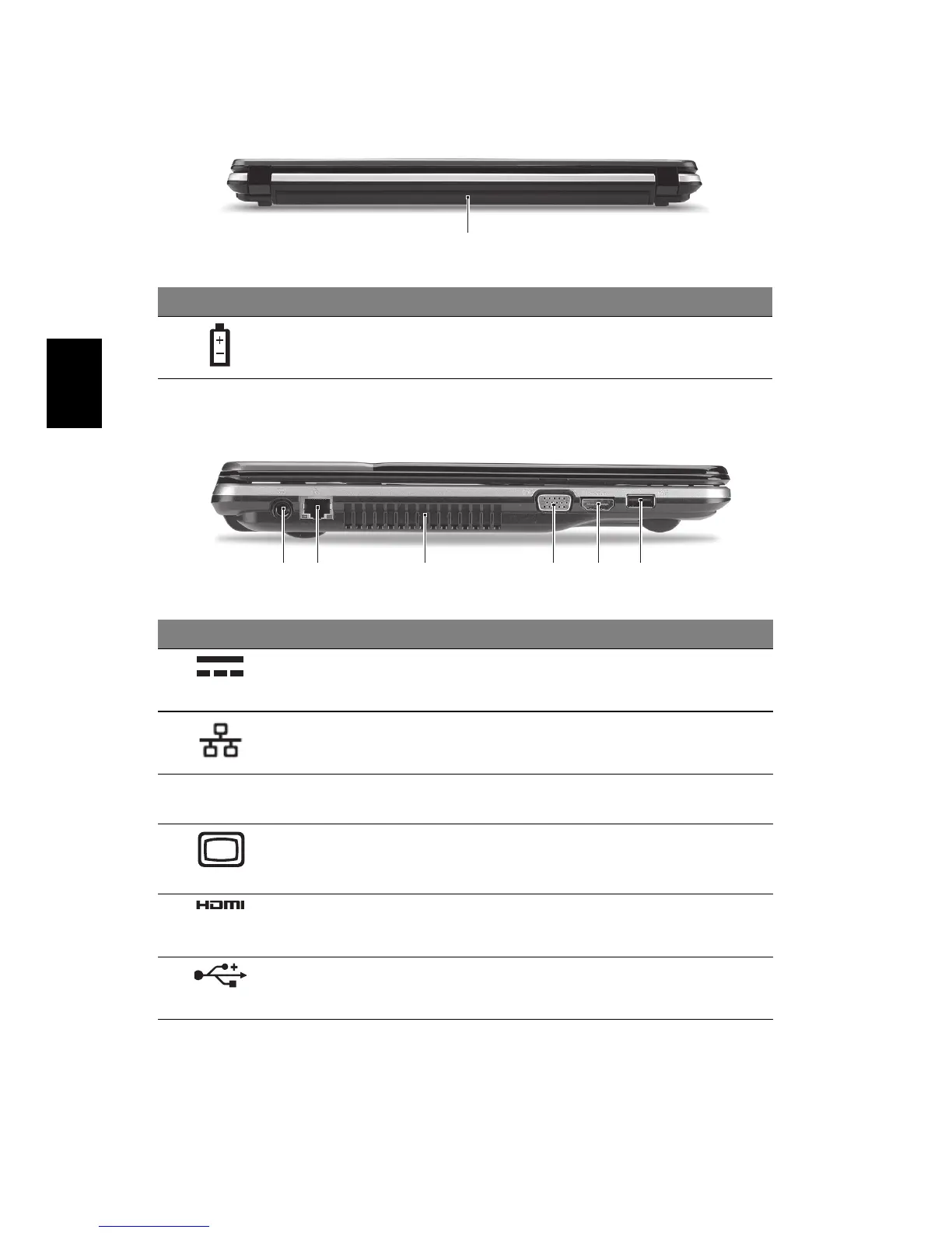 1 Jack CC-in Per il collegamento all’adattatore CA.