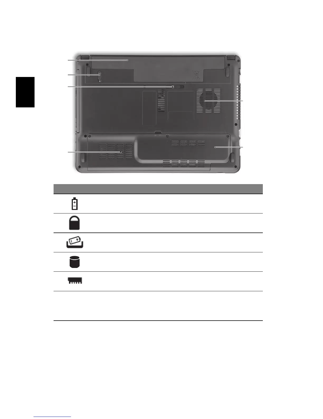 1 Baía da bateria Contém a bateria do computador.