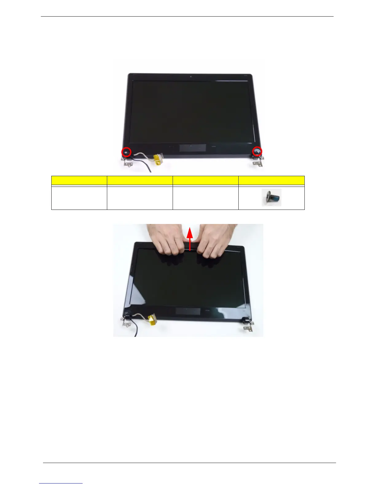 2. Remove the two (2) bezel screws from the LCD module.