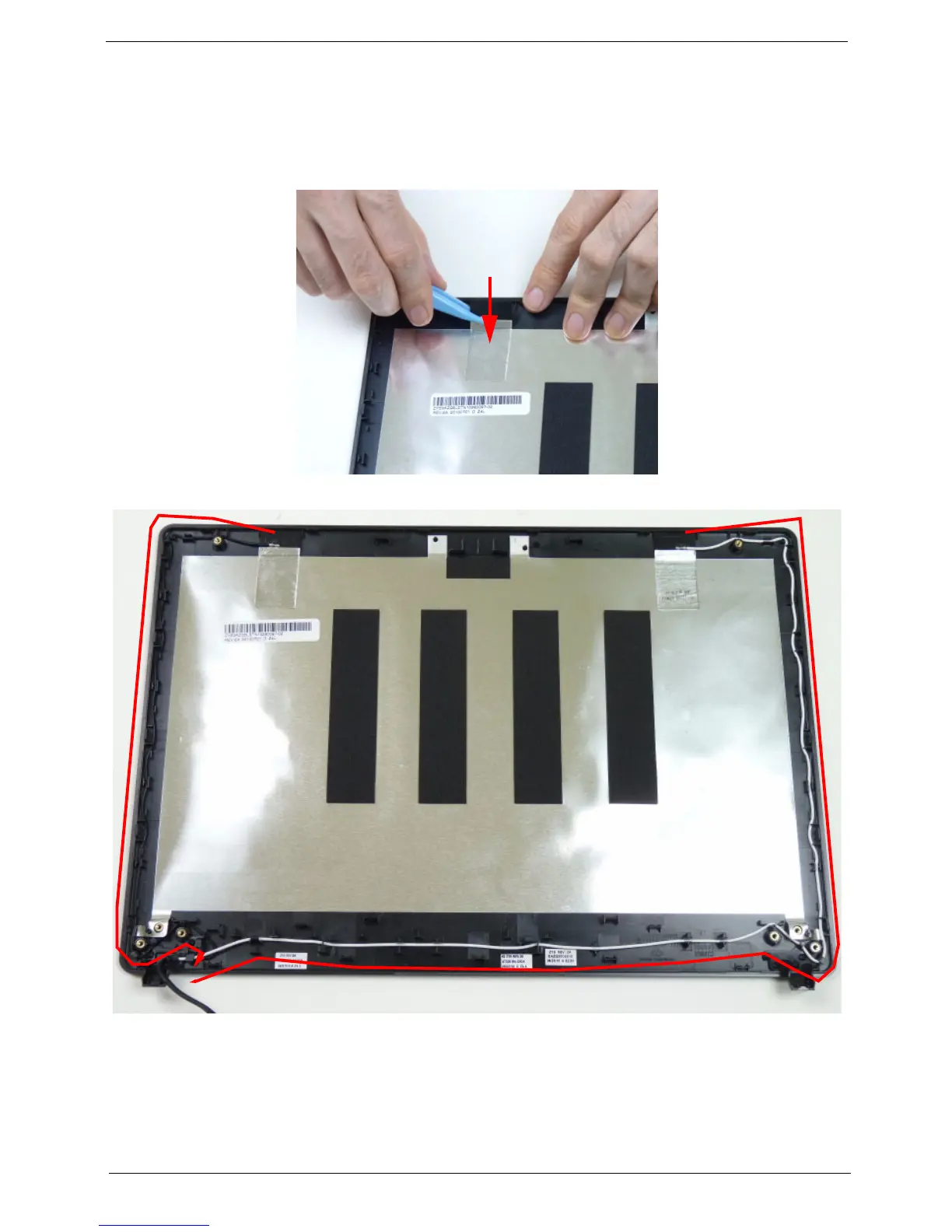 1. Place the black antenna cable onto the LCD cover as shown. Repeat for the white antenna.