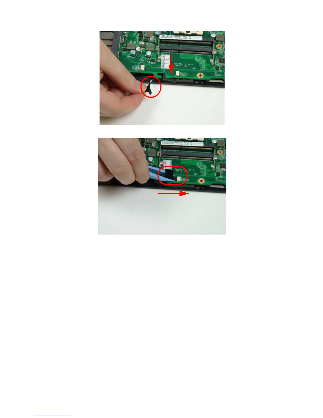 4. Connect the speaker cable to the mainboard.
