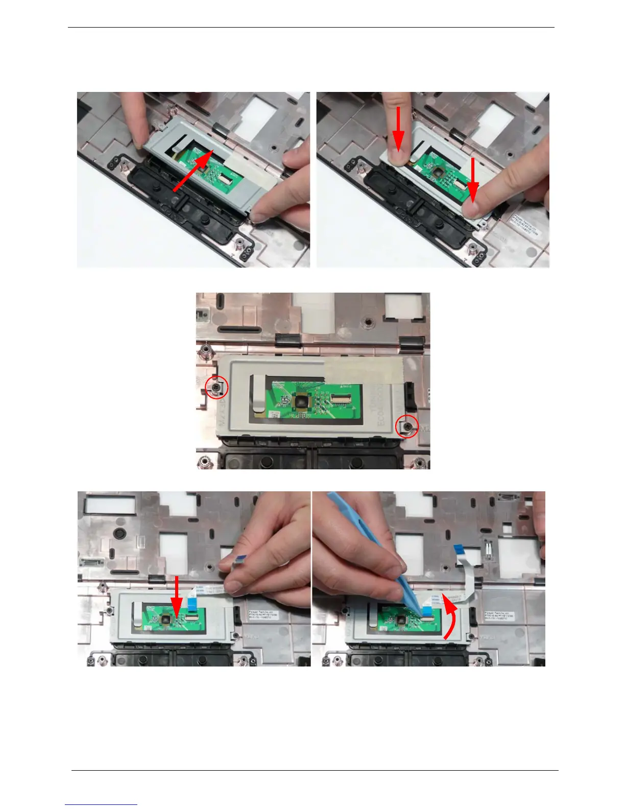 3. Replace the two screws to secure the TouchPad Bracket to the Upper Cover.