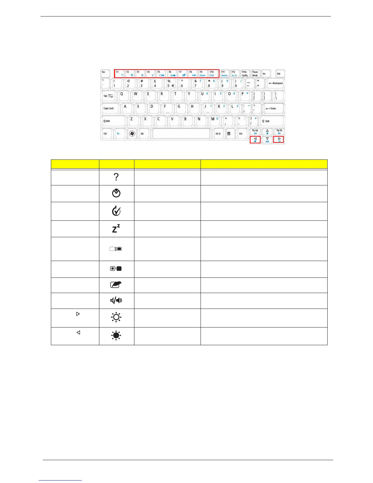 <Fn> + <F1> Hotkey help Displays help on hotkeys.