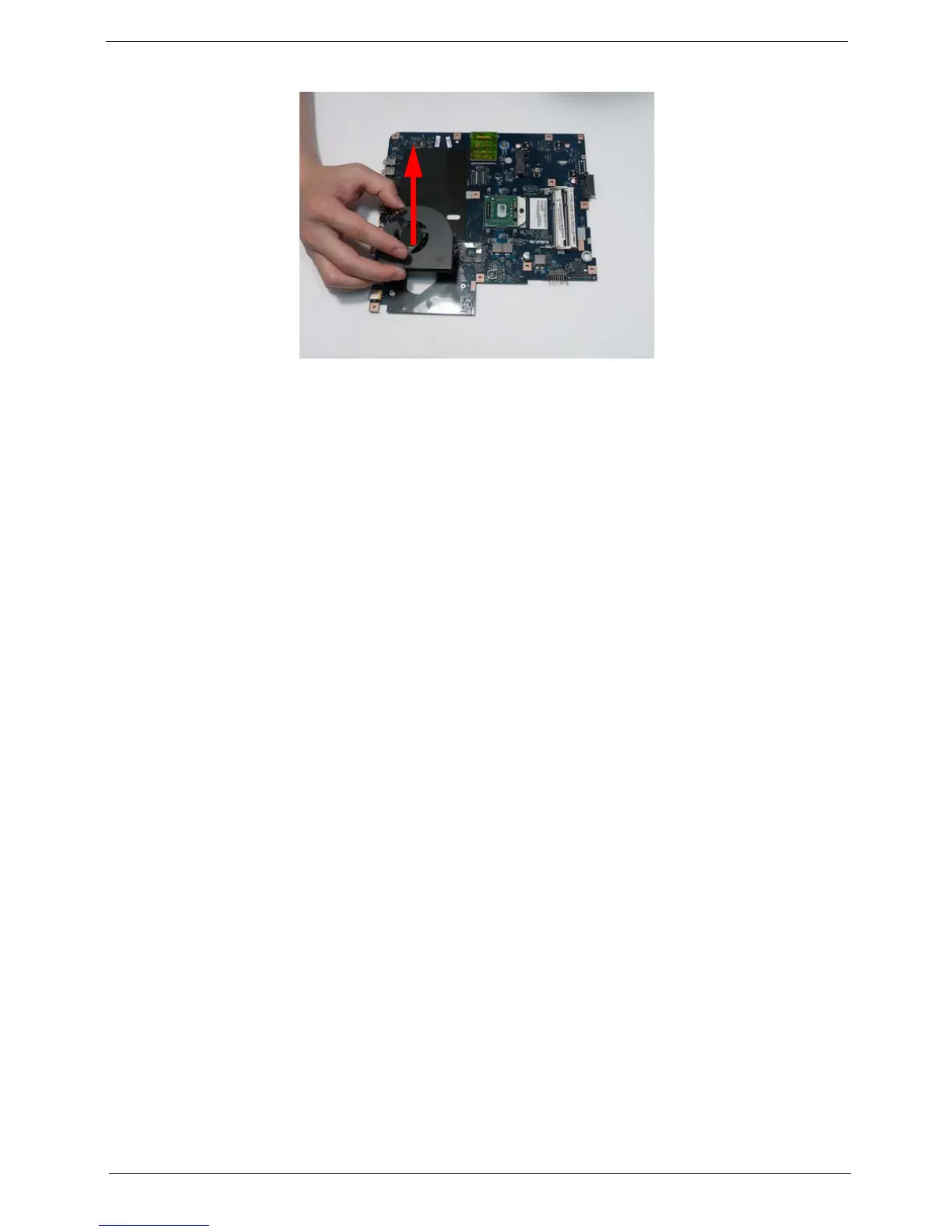 4. Lift the CPU Fan clear of the Mainboard as shown.