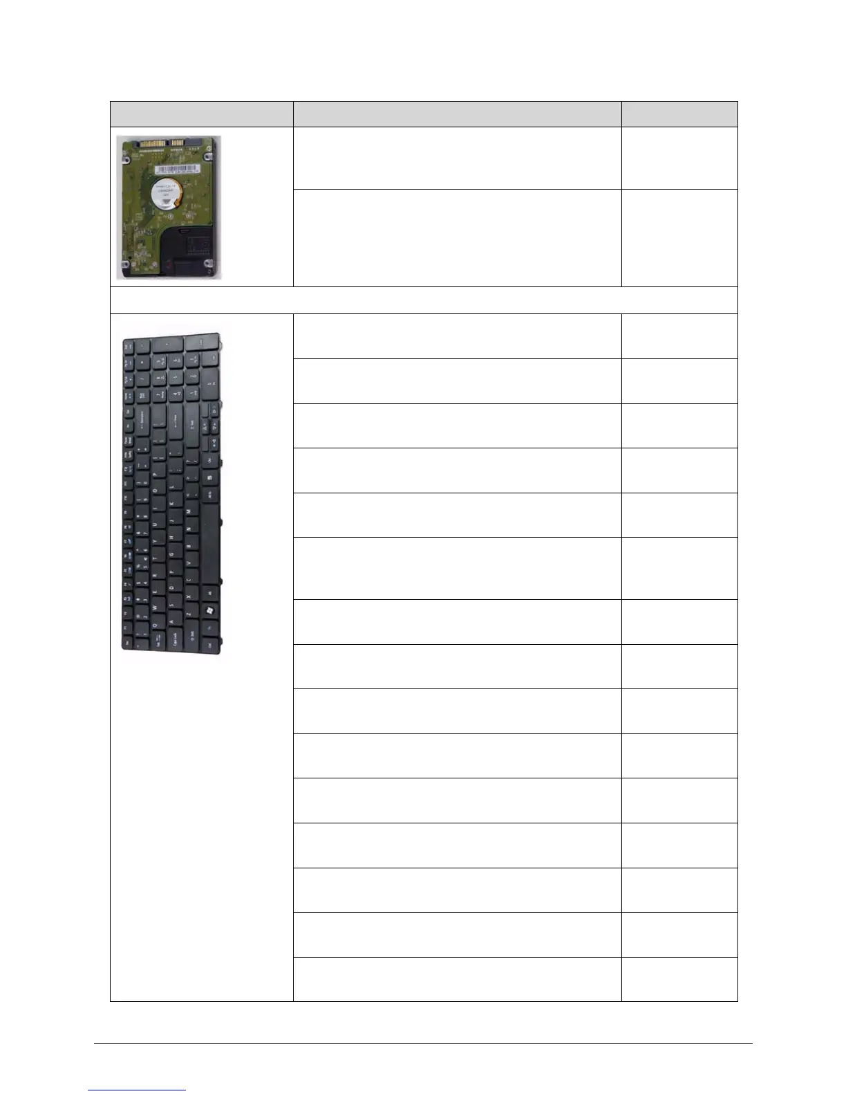 Category Description Acer Part No.