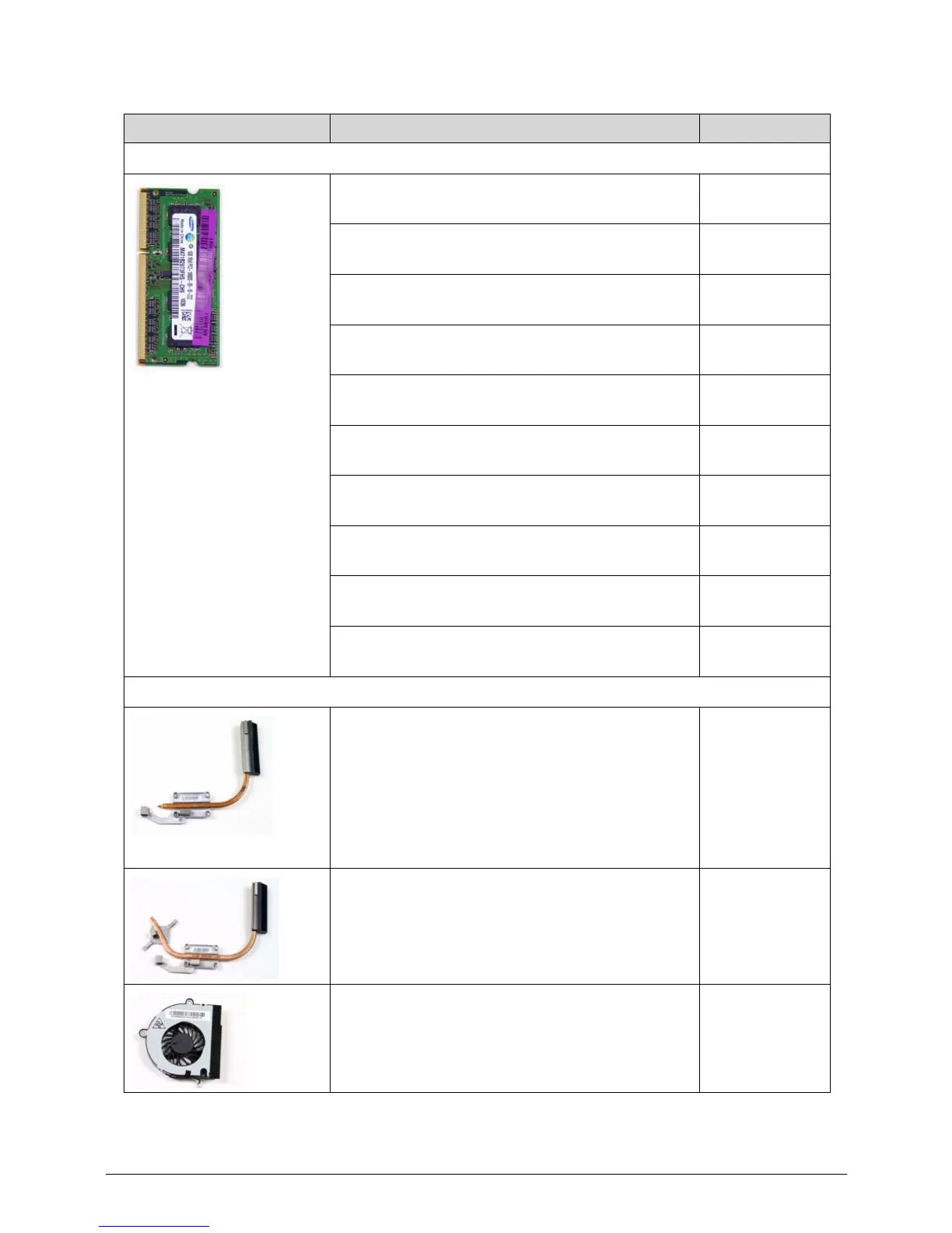 Category Description Acer Part No.