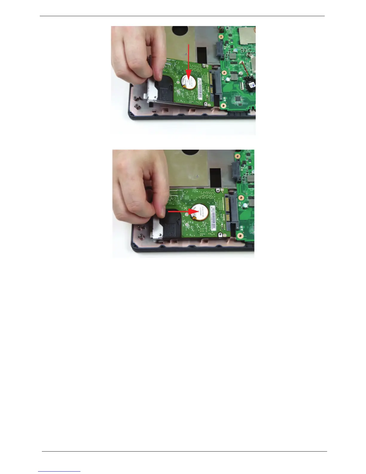 4. Using the pull-tab, slide the HDD module in the direction of the arrow to connect the interface.