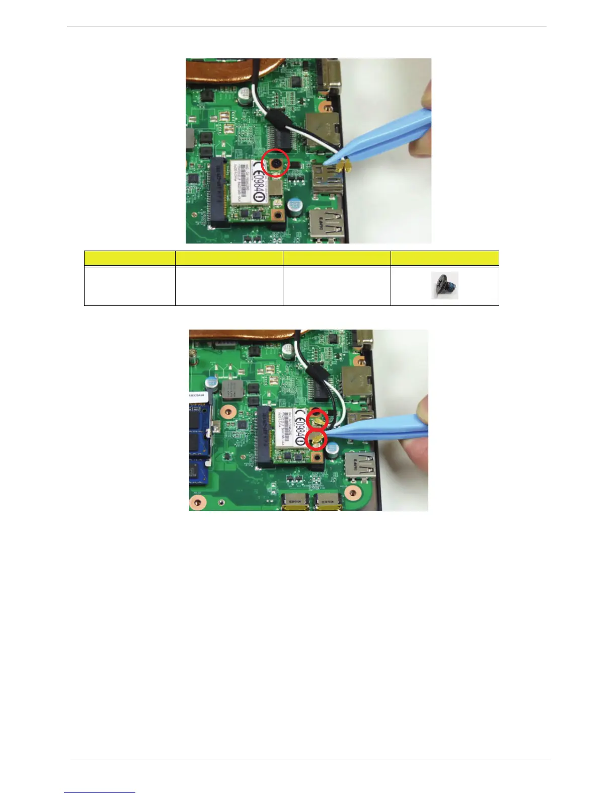 3. Connect the two (2) antenna cables to the WLAN module as shown.