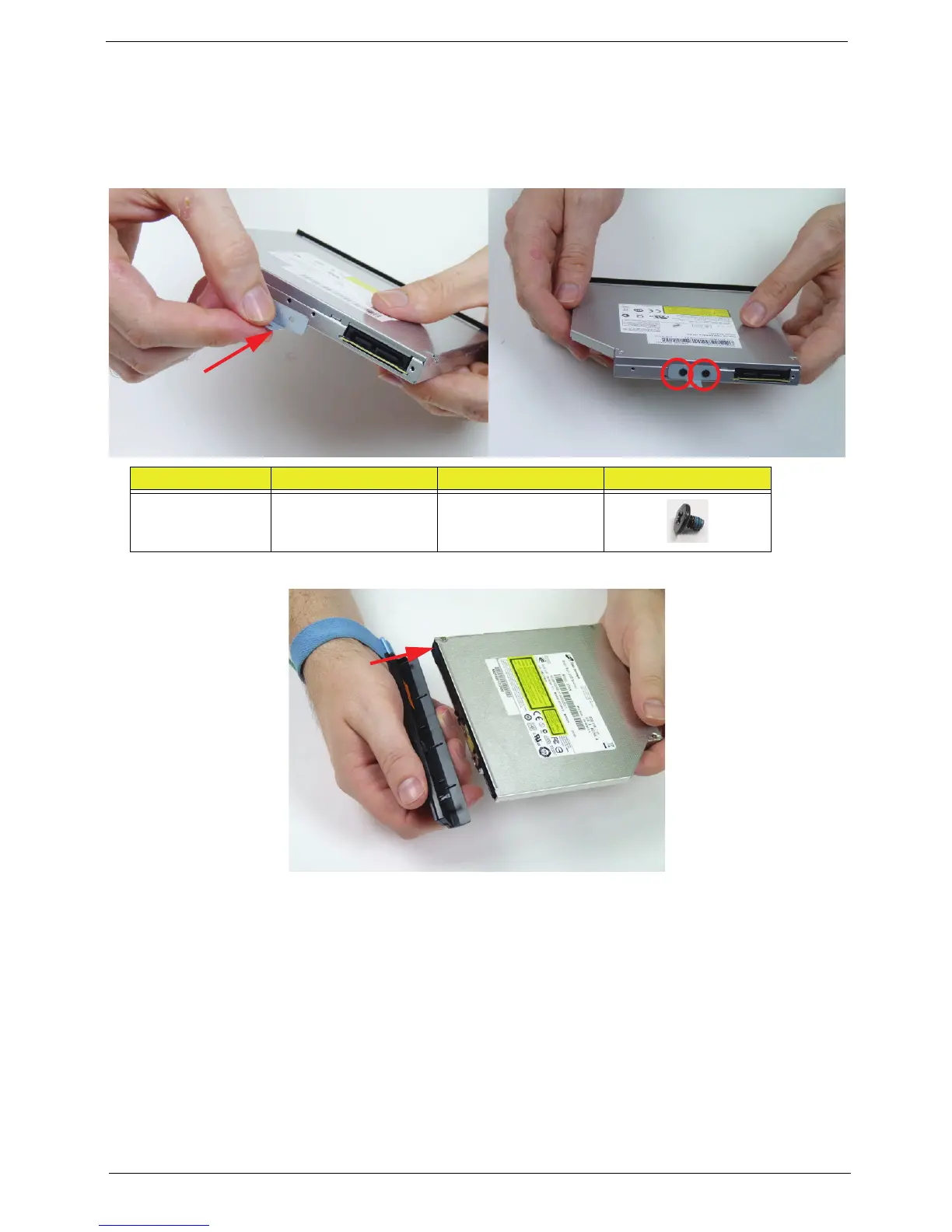 1. Place the ODD bracket onto the ODD module and replace the two (2) screws to secure it.