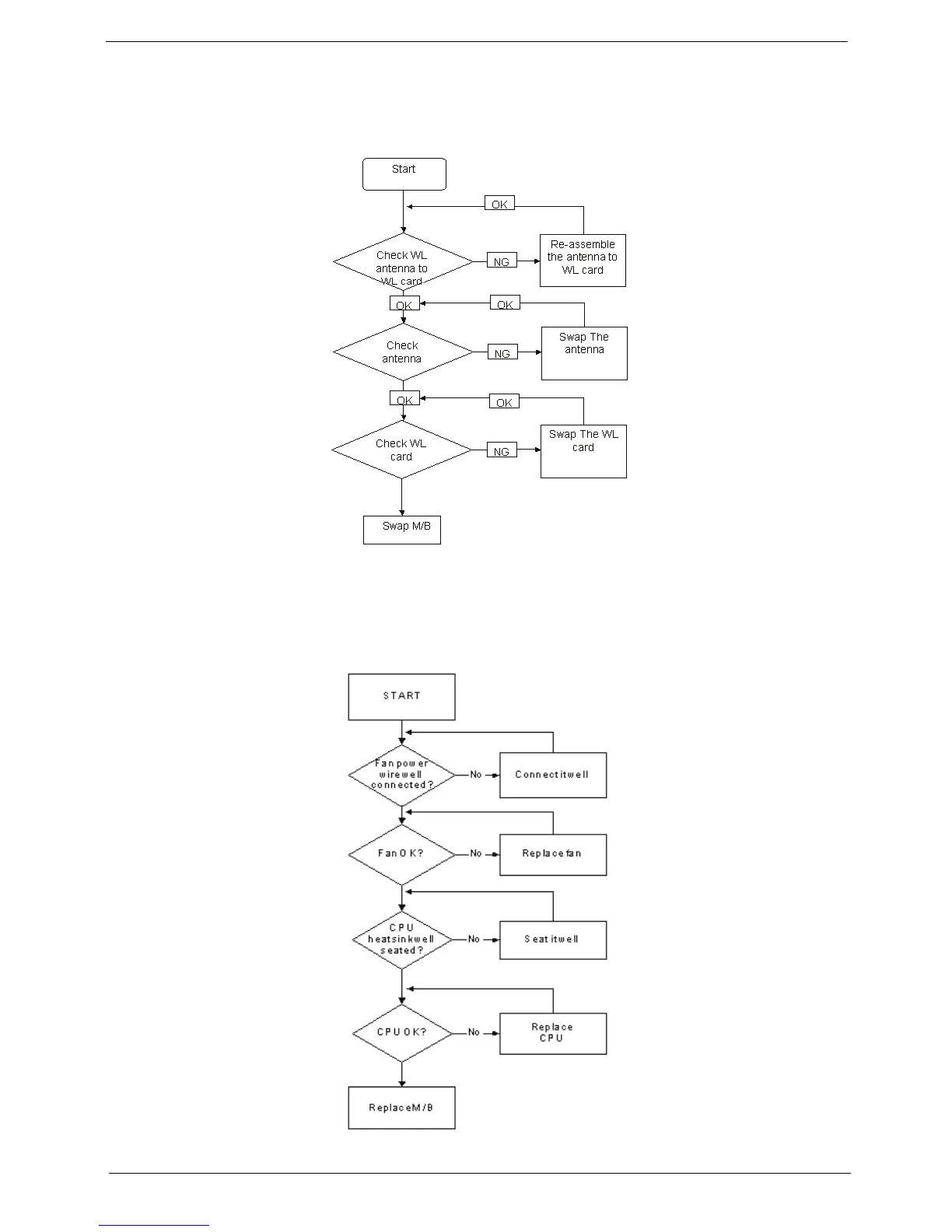 If the WLAN fails, perform the following actions one at a time to correct the problem. Do not replace a non-