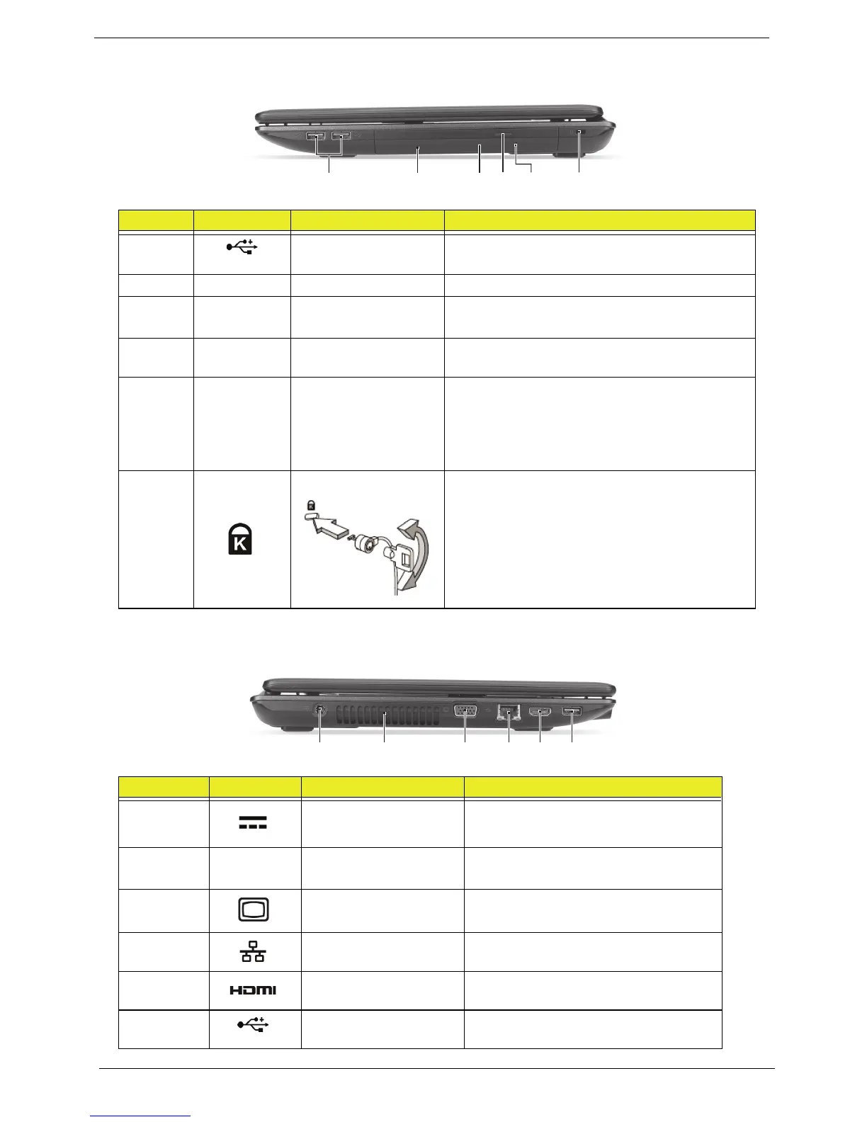 6 Kensington lock slot Connects to a Kensington-compatible computer