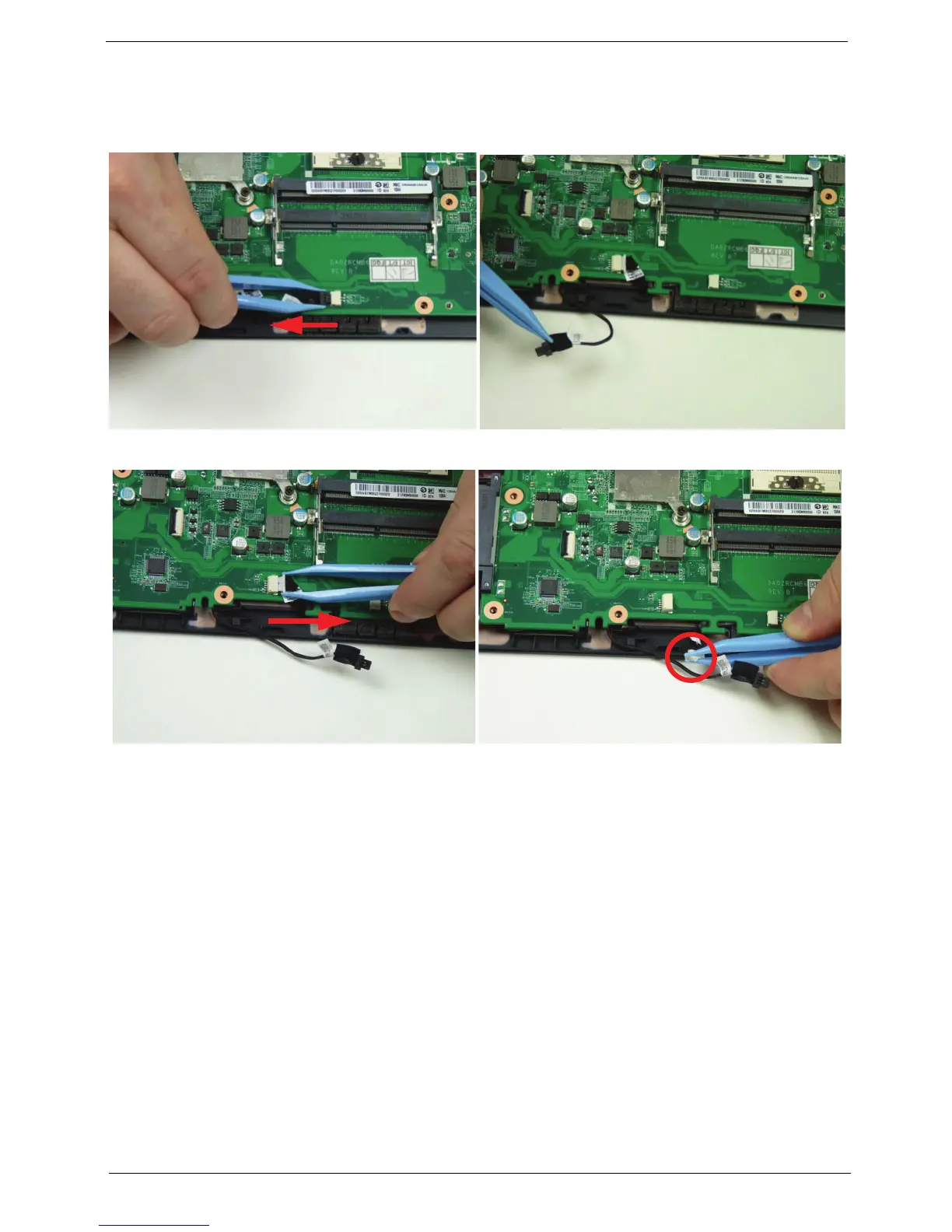 2. Disconnect the speaker cable from the mainboard connector and move it away from the mainboard.