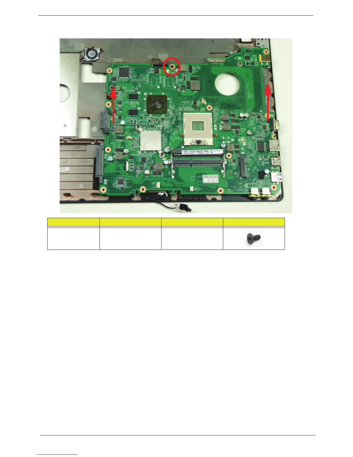 4. Remove the one (1) securing screw from the mainboard (1) and lift the mainboard away from the lower cover