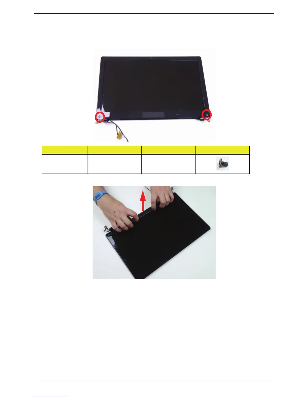 2. Remove the two (2) bezel screws from the LCD modulele.