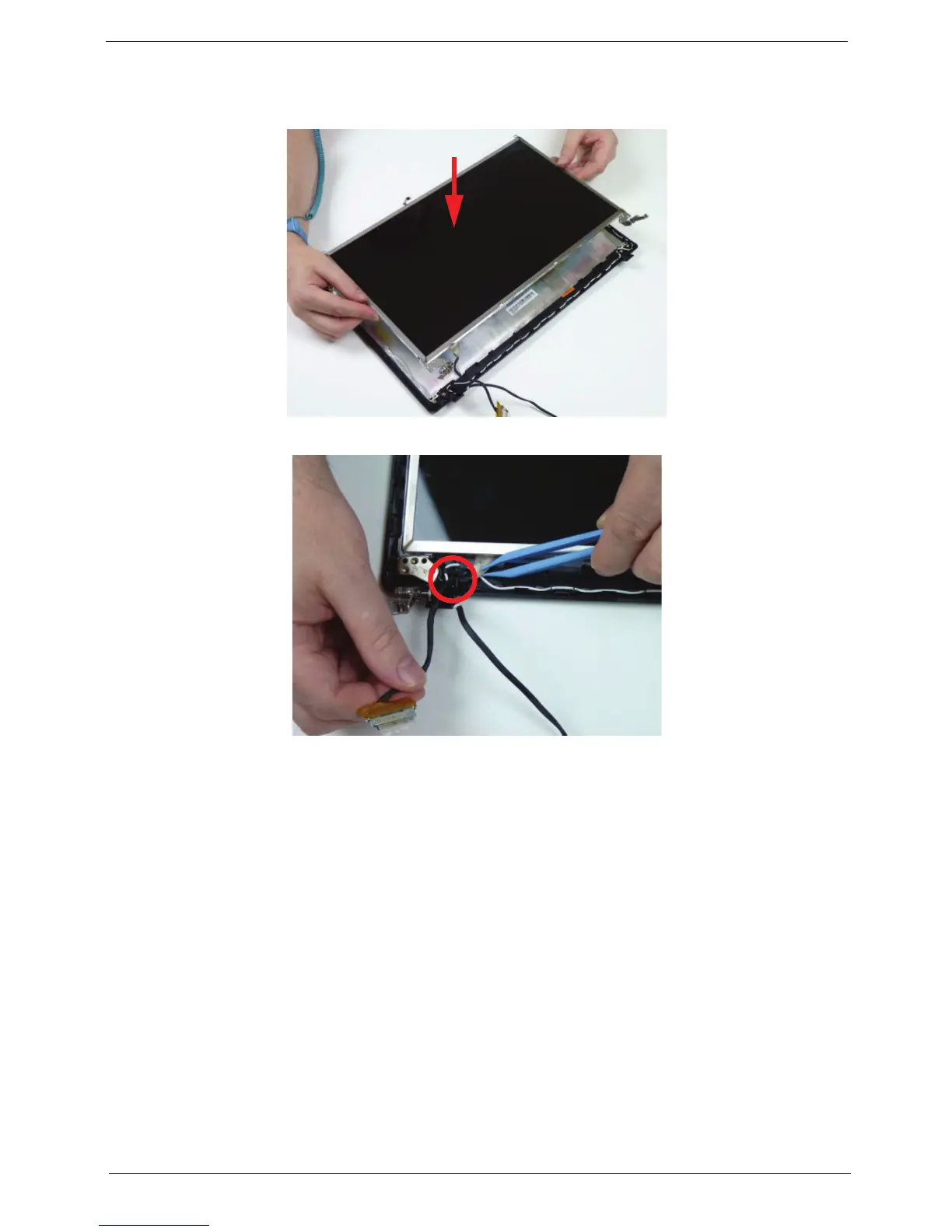 1. Place the LCD panel on the LCD cover as shown.