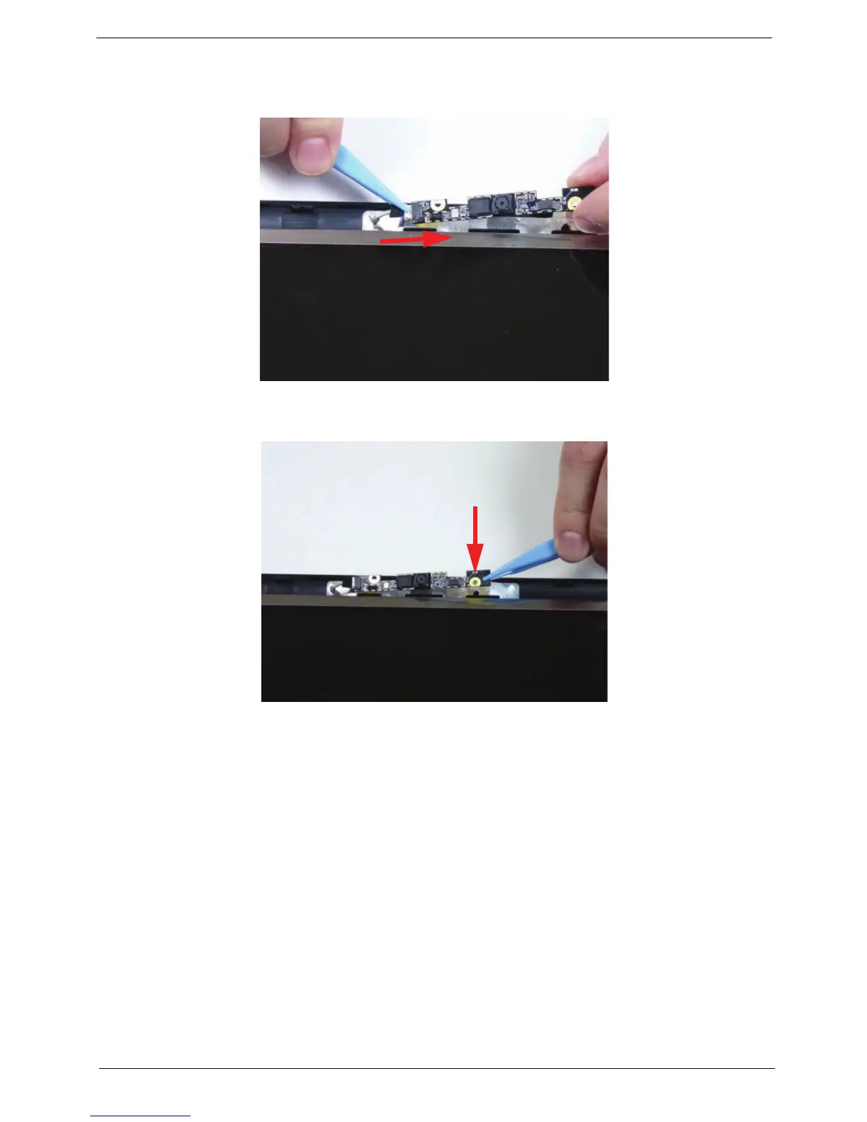 2. Place the camera module onto the LCD cover. Apply gentle pressure to fix the adhesive.