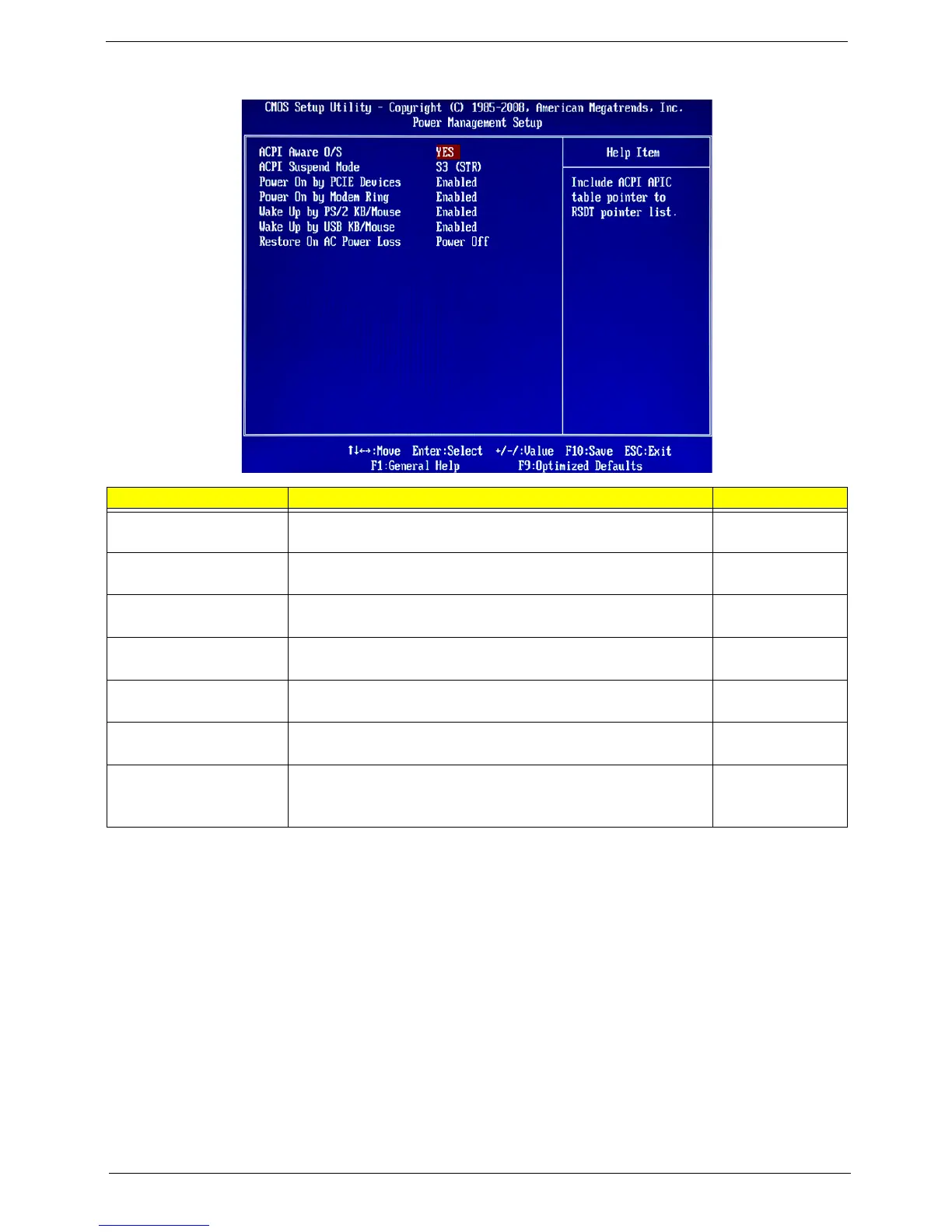 ACPI Aware O/S Enables or disables the Advanced Configuration and Power