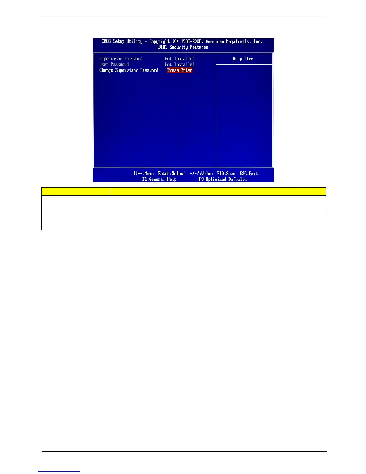 1. Use the up/down arrow keys to select Change Supervisor Password menu then press Enter.