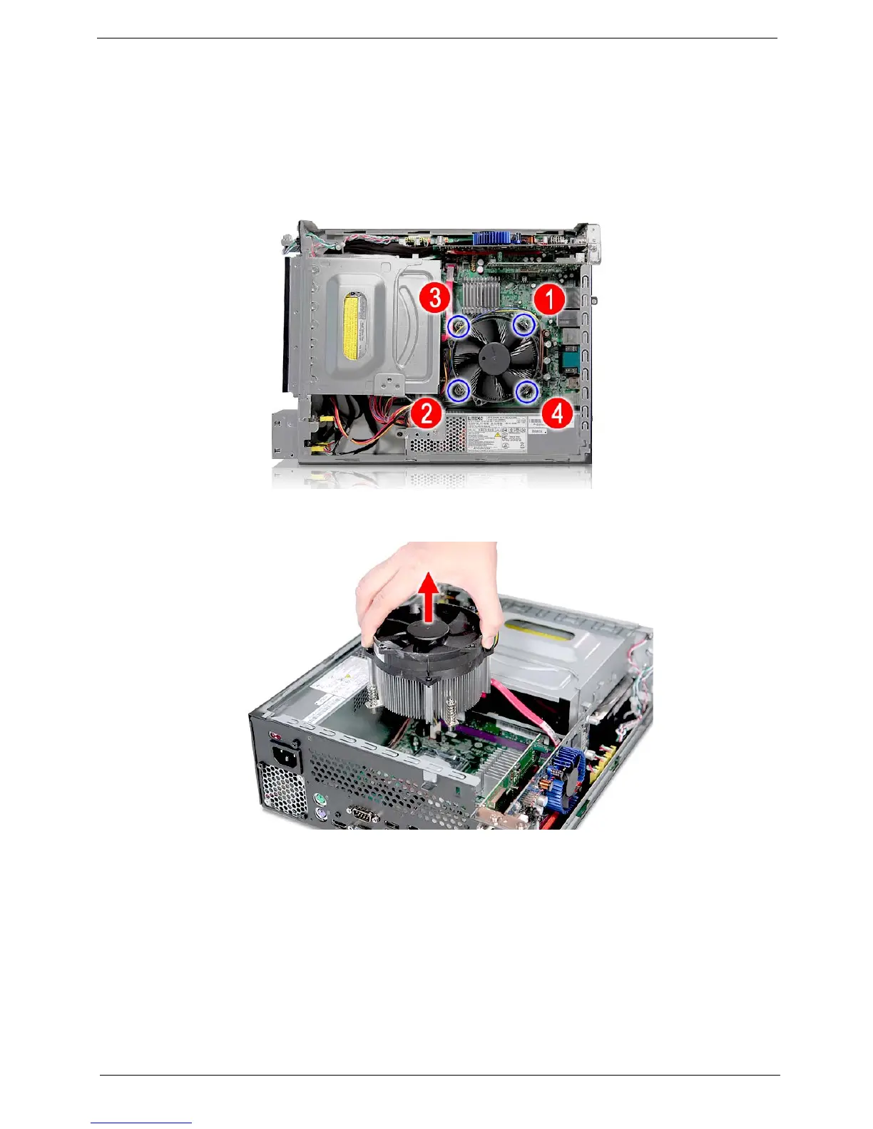 3. Use a long-nosed screwdriver to loosen the four screws on the heat sink, in the order as shown below.