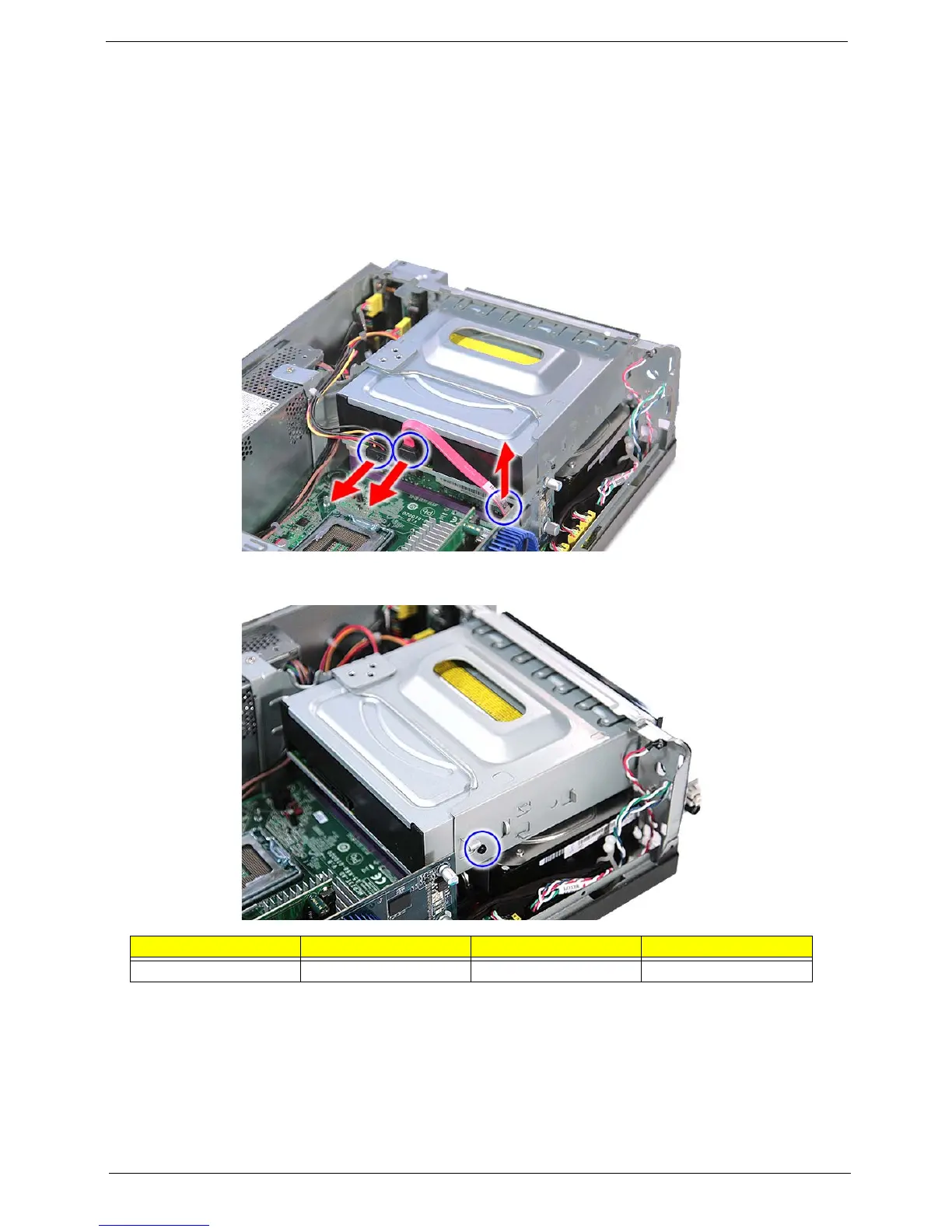5. Disconnect the data and power cables from the rear of the optical drive and the mainboard.