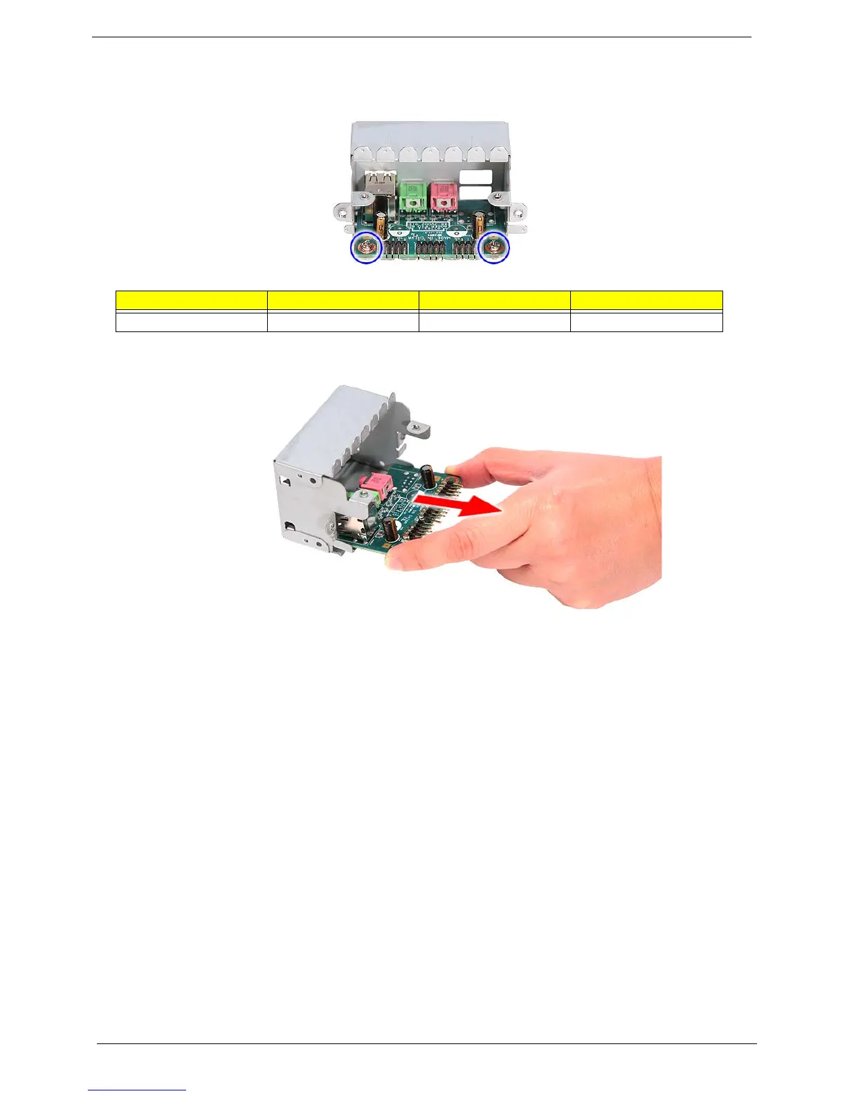 a. Remove the two screws (C) that secure the I/O board to the bracket.