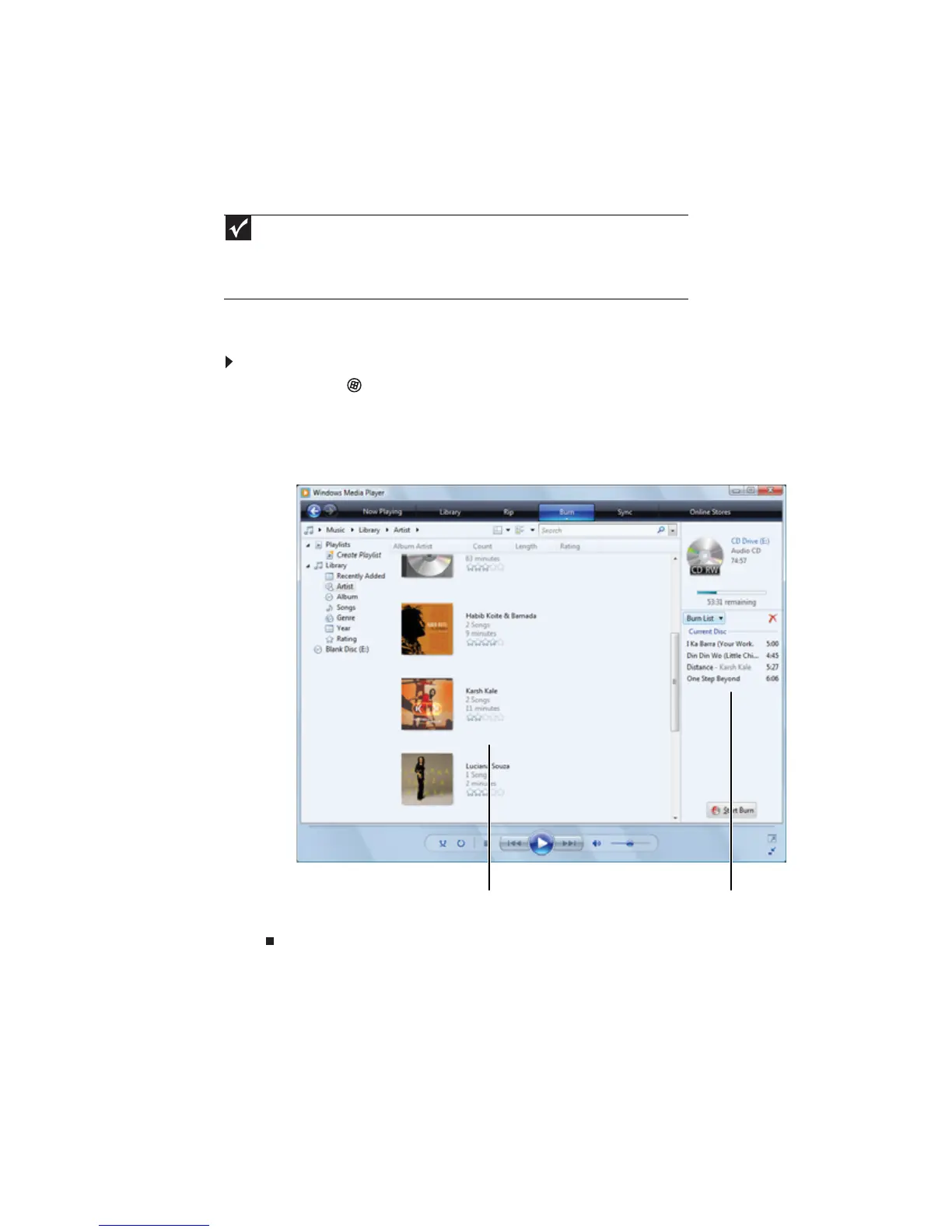 en el CD desde la Biblioteca y suéltelas en la Lista de grabación.