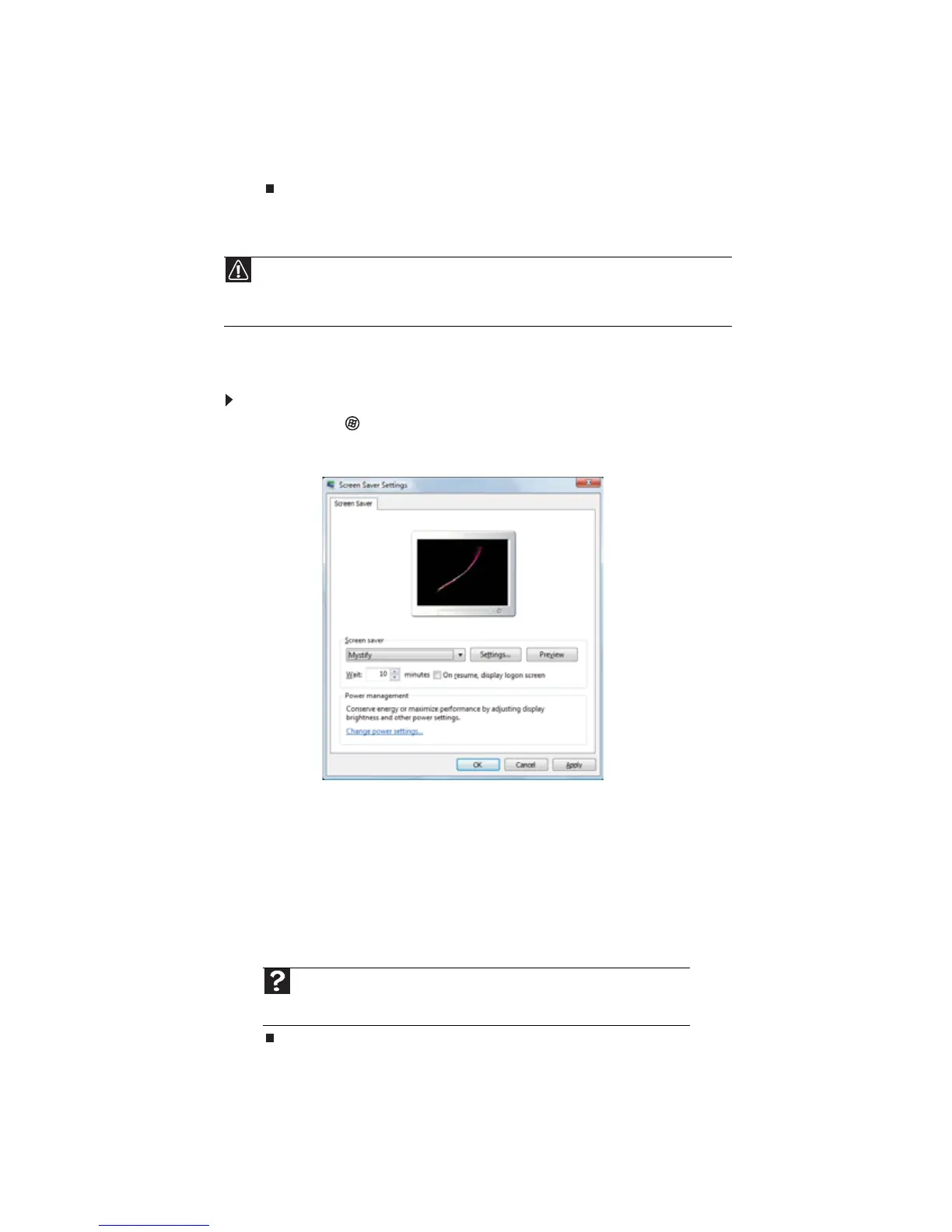Buscar ayuda escriba protectores de pantalla y, a continuación, presione I