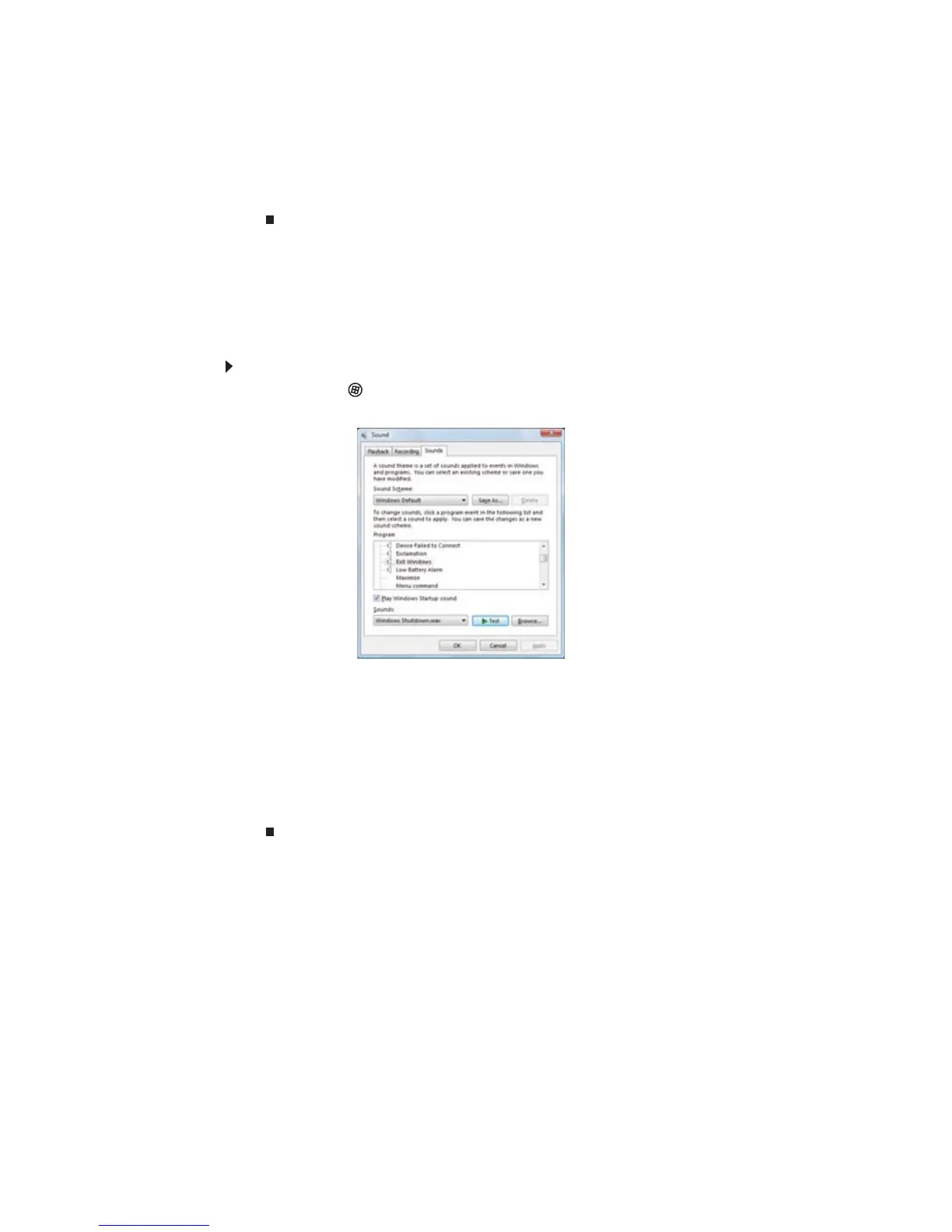 en Cambiar sonidos del sistema. Se abrirá el cuadro de diálogo Sonido.