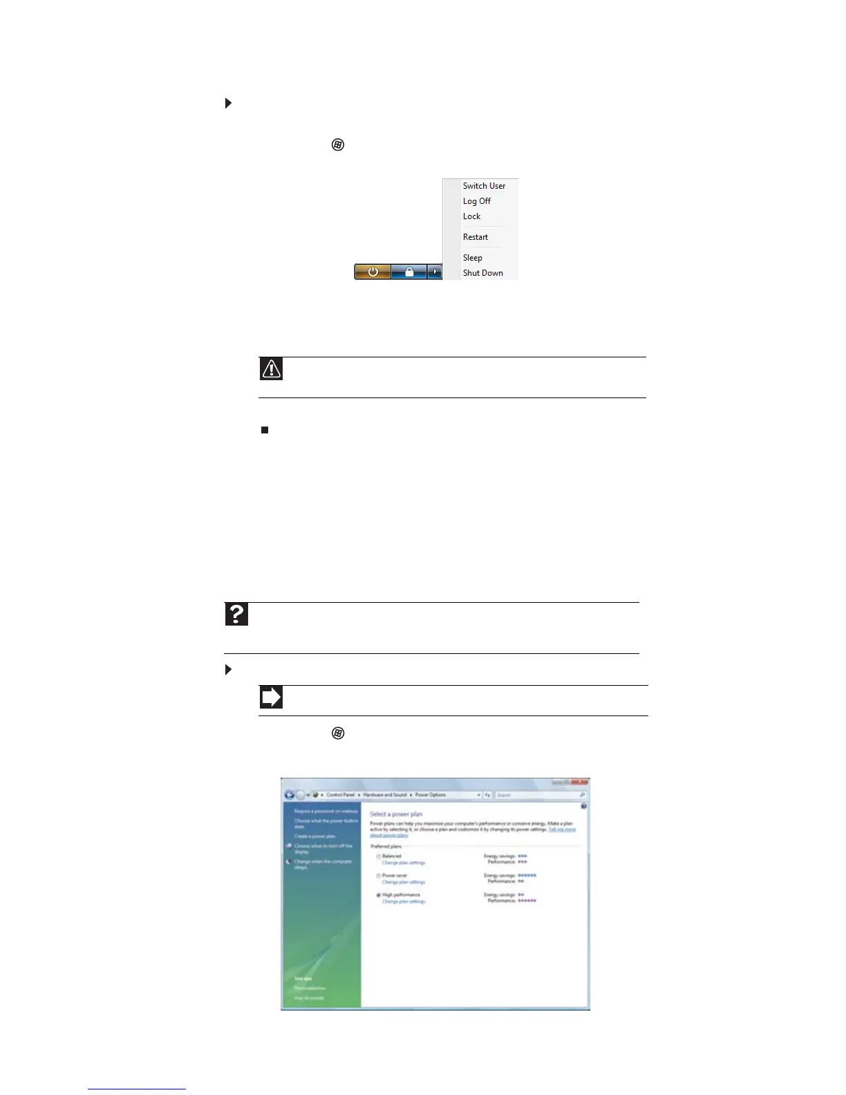 1 Haga clic en (Inicio), Panel de control, Hardware y sonido, en Opciones de energía