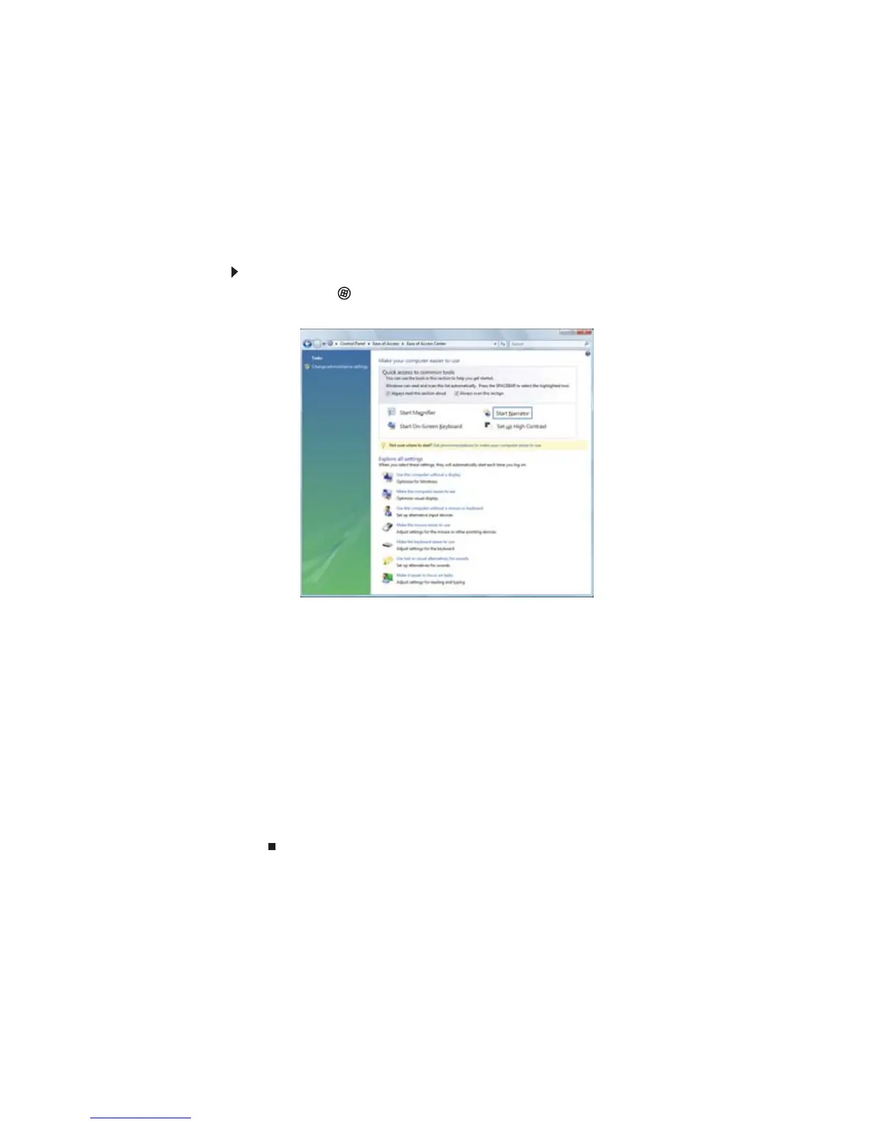 1 Haga clic en (Inicio), Panel de control, Facilidad de acceso y, a continuación, en Centro