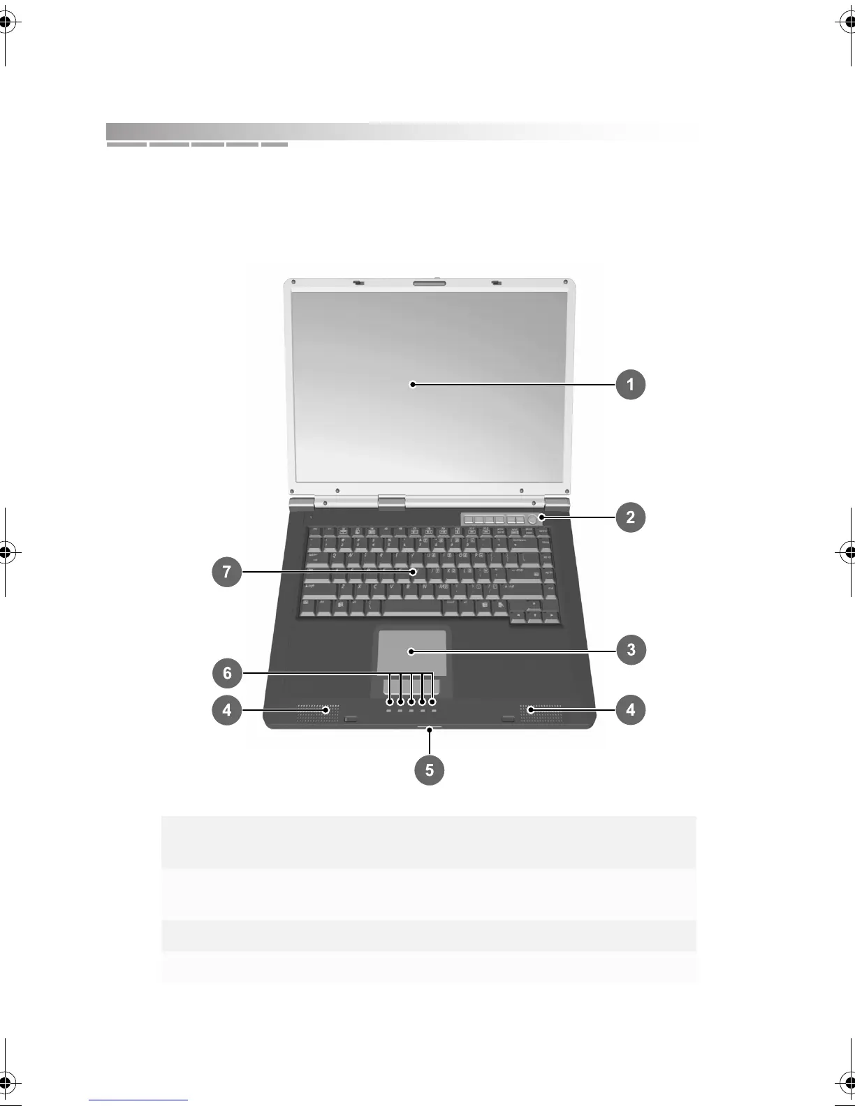 3 touchpad 7 keyboard area