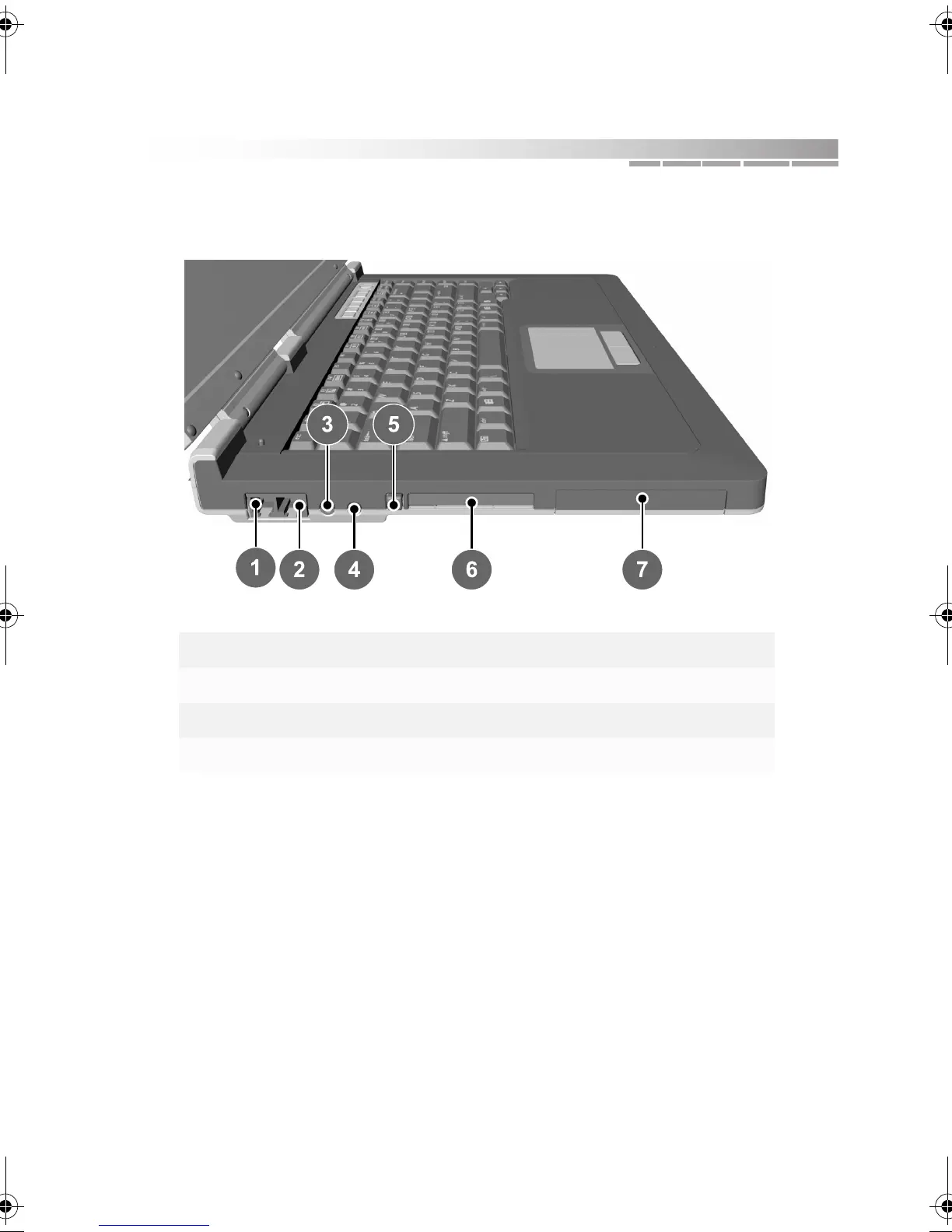 1 modem port 5 PC Card eject button