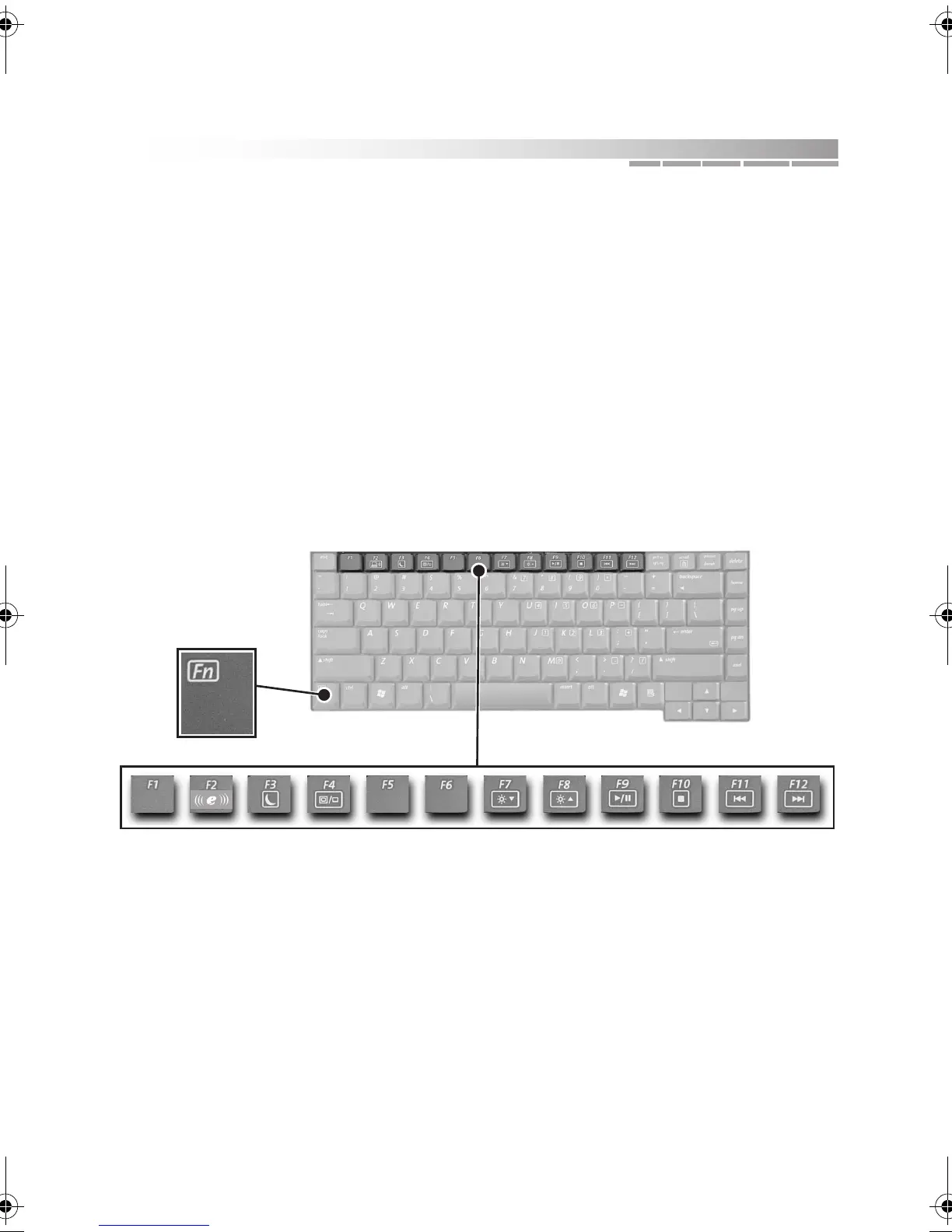 Many of the function keys across the top of the keyboard have two uses — one