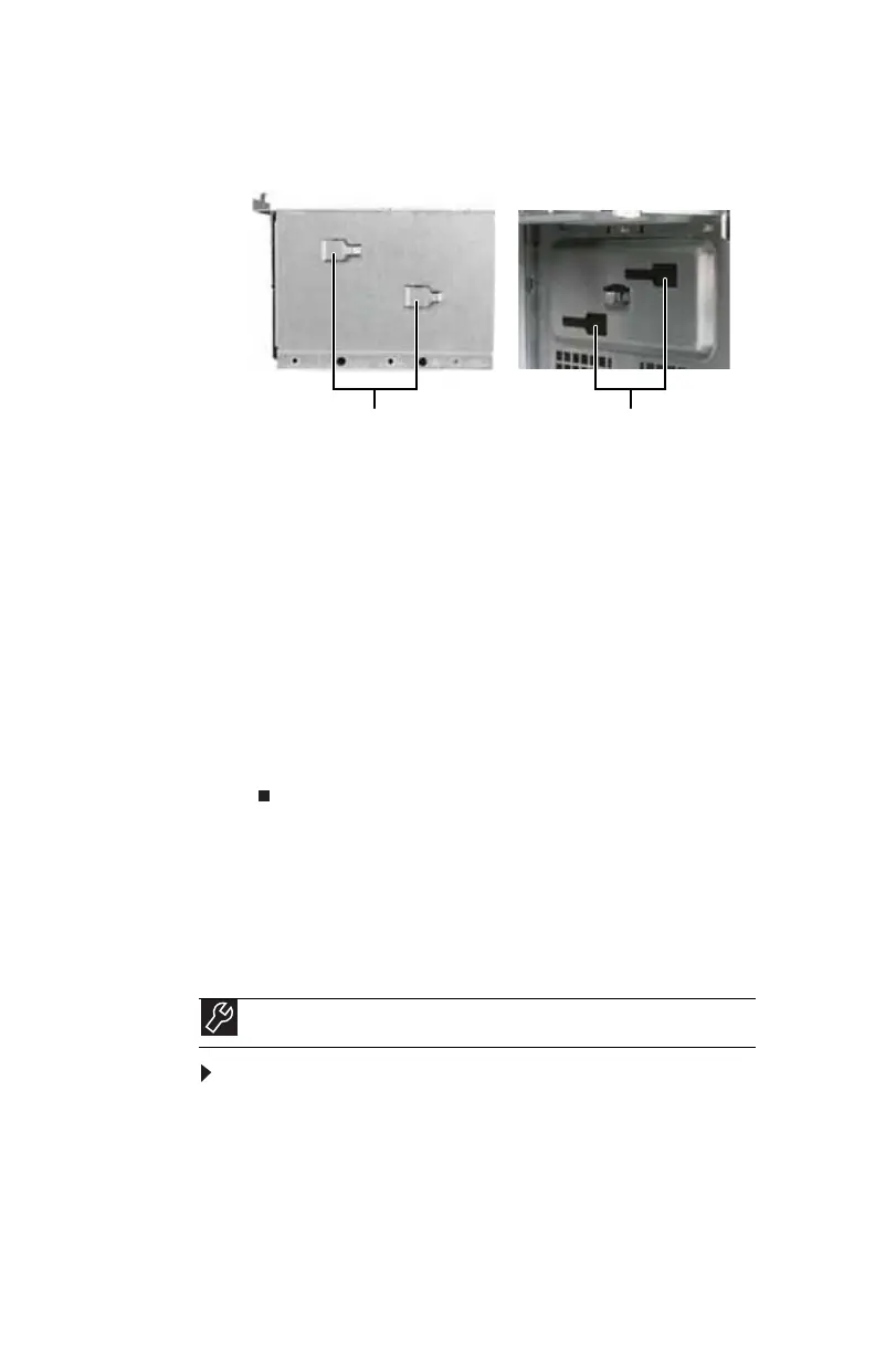 Hard drive cage tabs Slots on inside of case